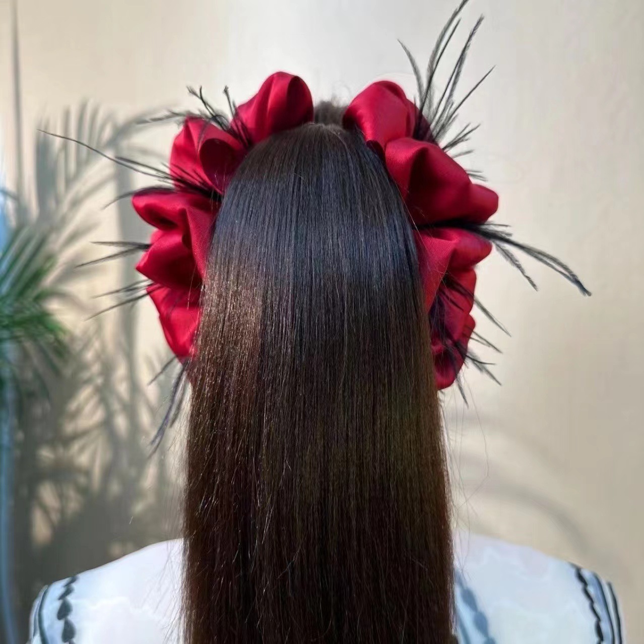 13cm wine red obsidian feather grip