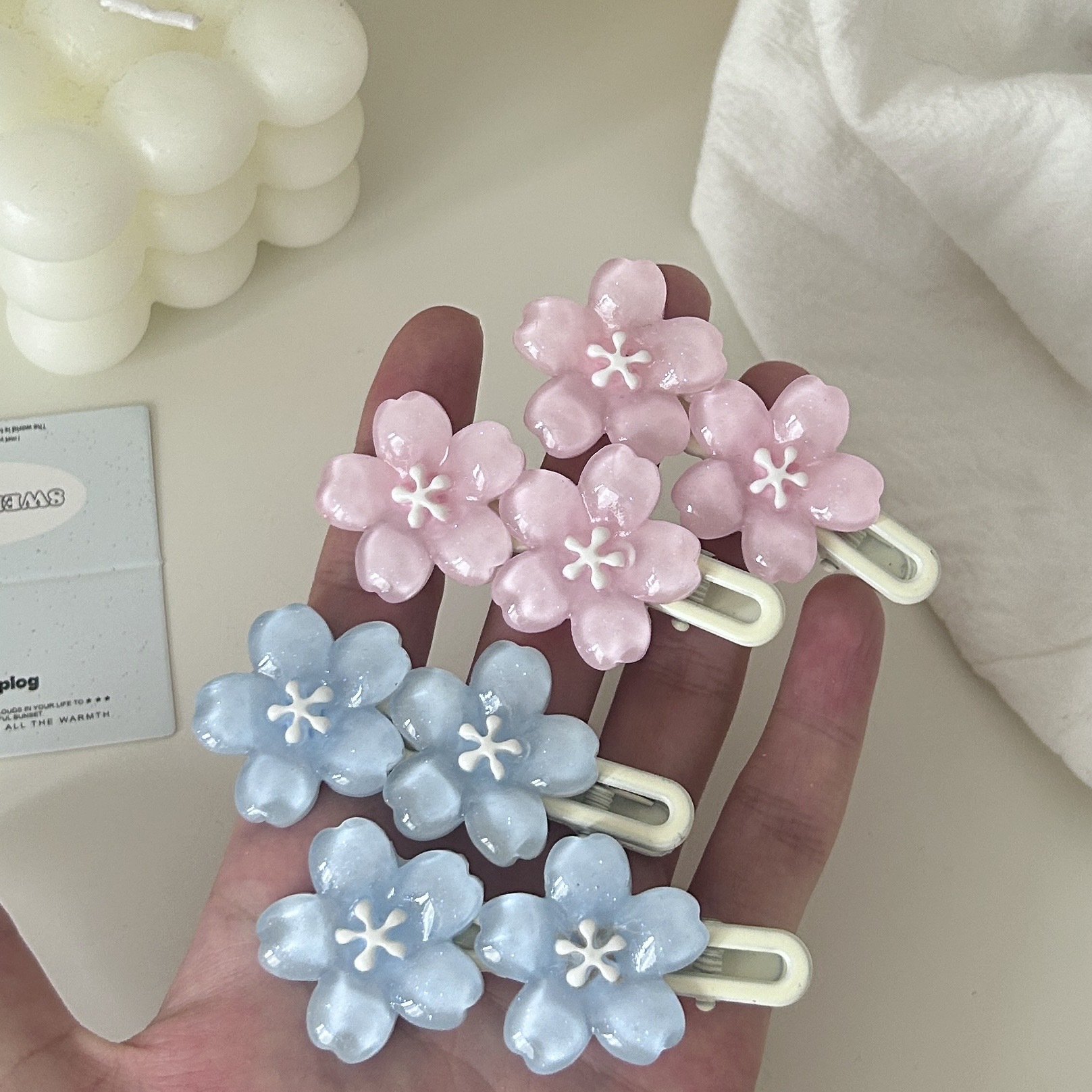 white-jelly cherry blossom barrettes single