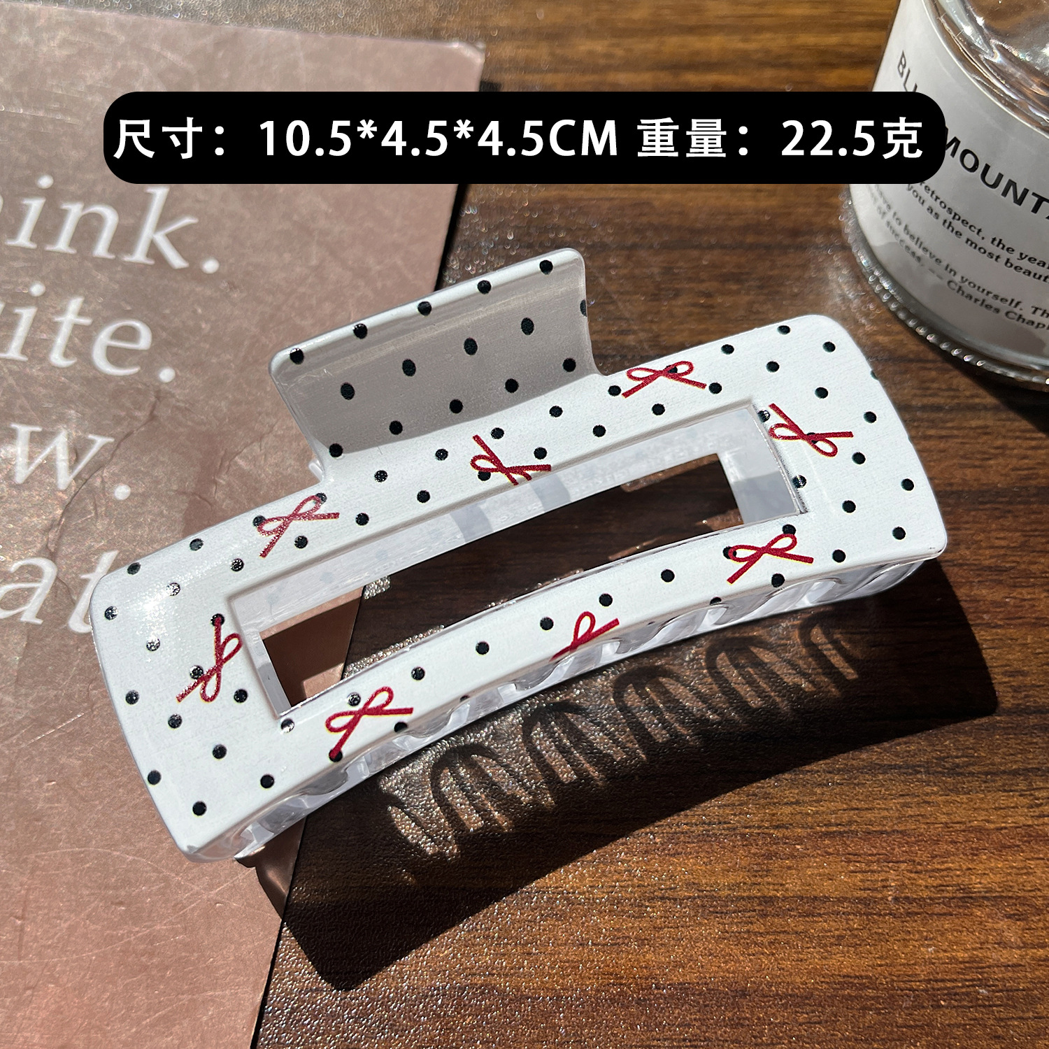 black polka-dot ribbon bow