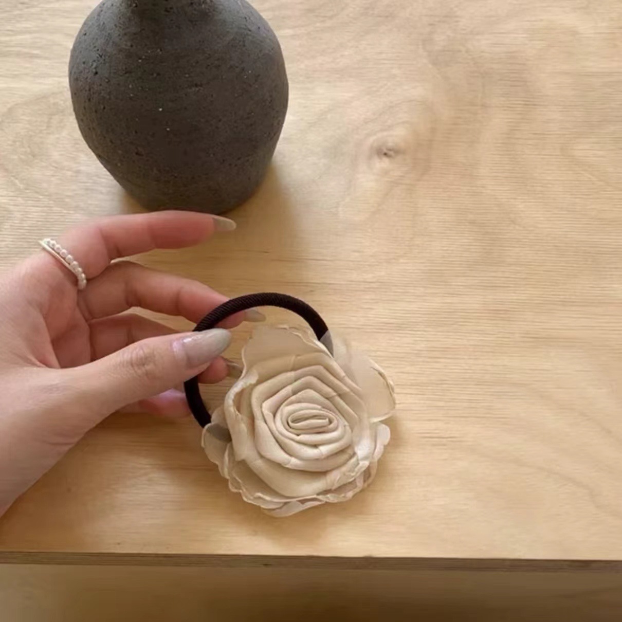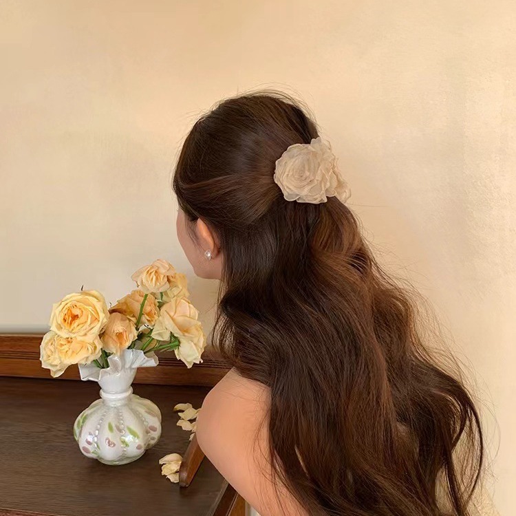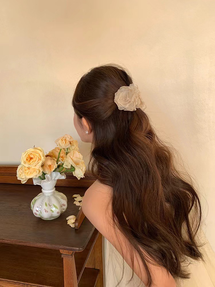 beige flower hair clip