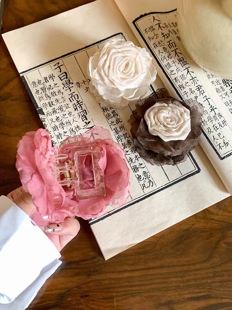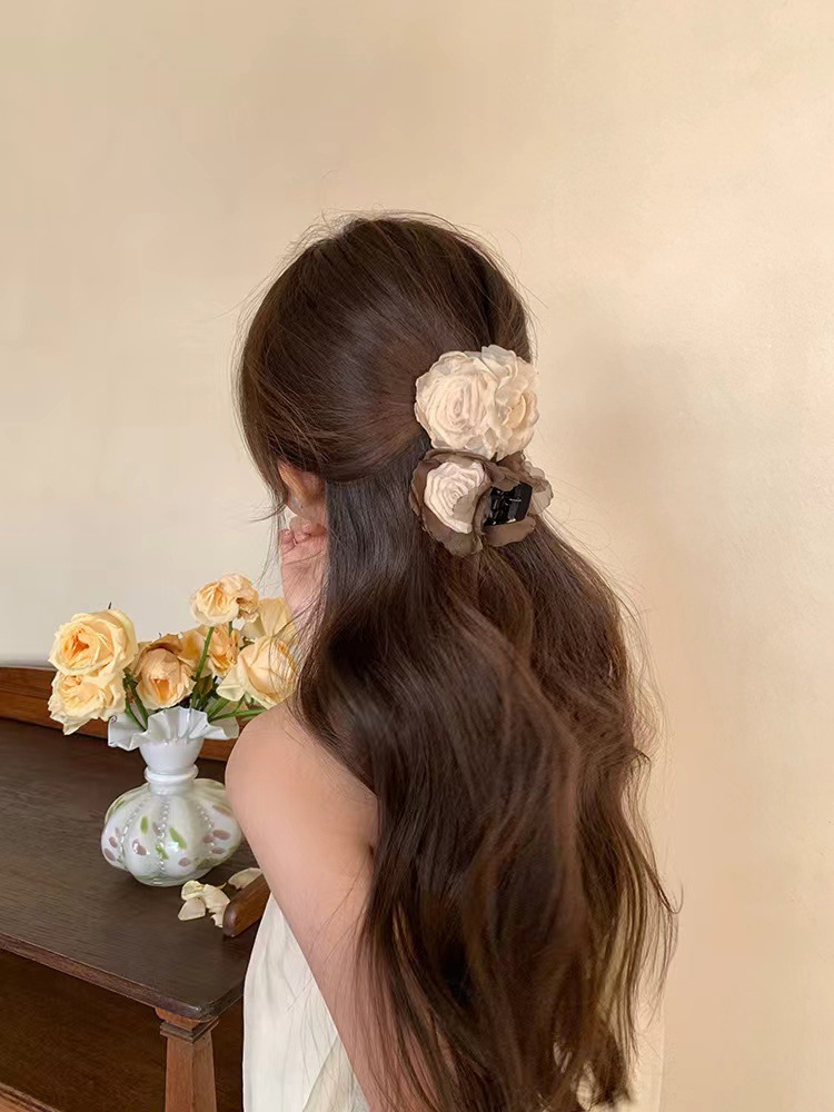coffee beige flower hair clip