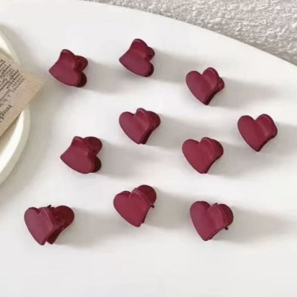 48 heart-shaped matte red small jaw clips [one pack]