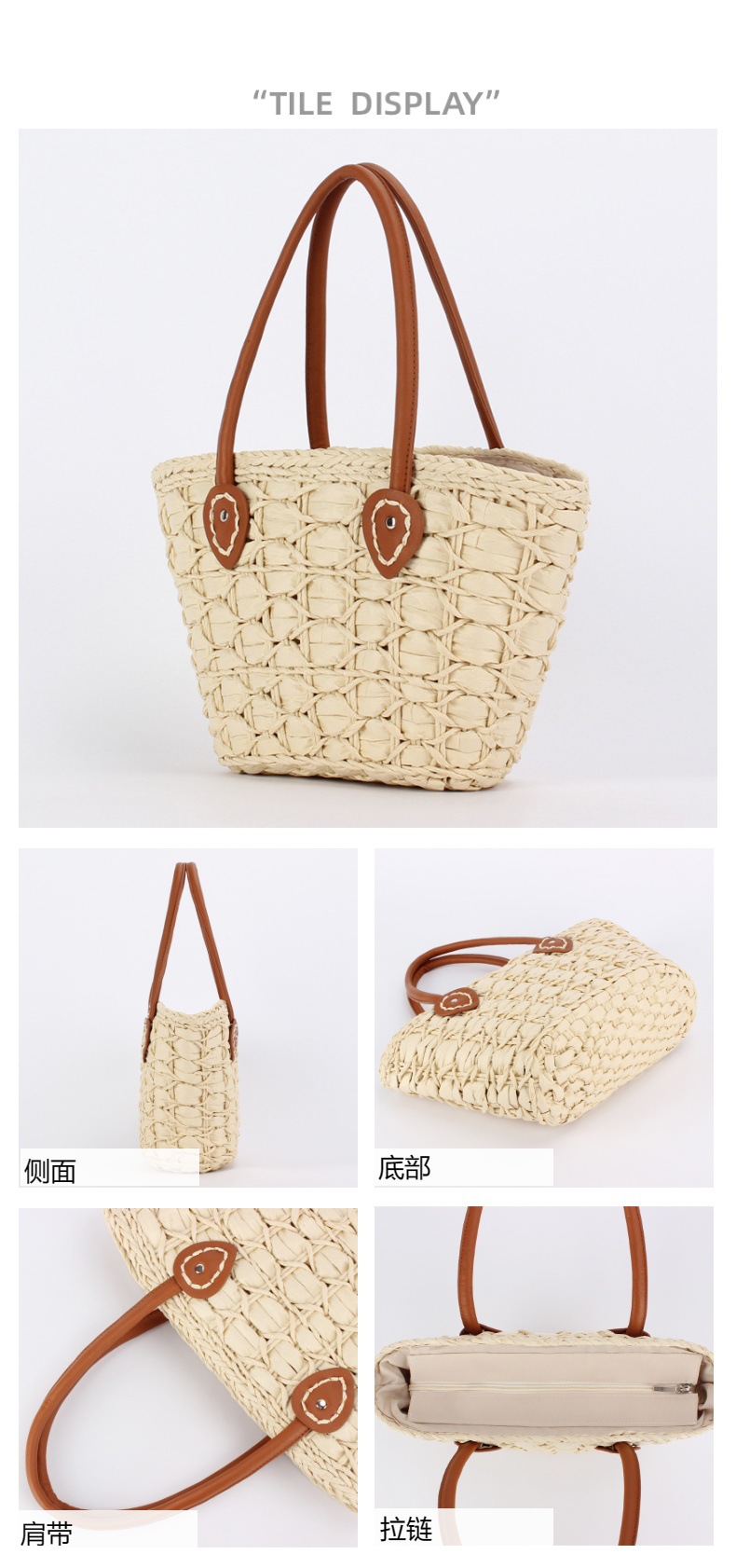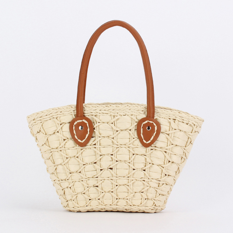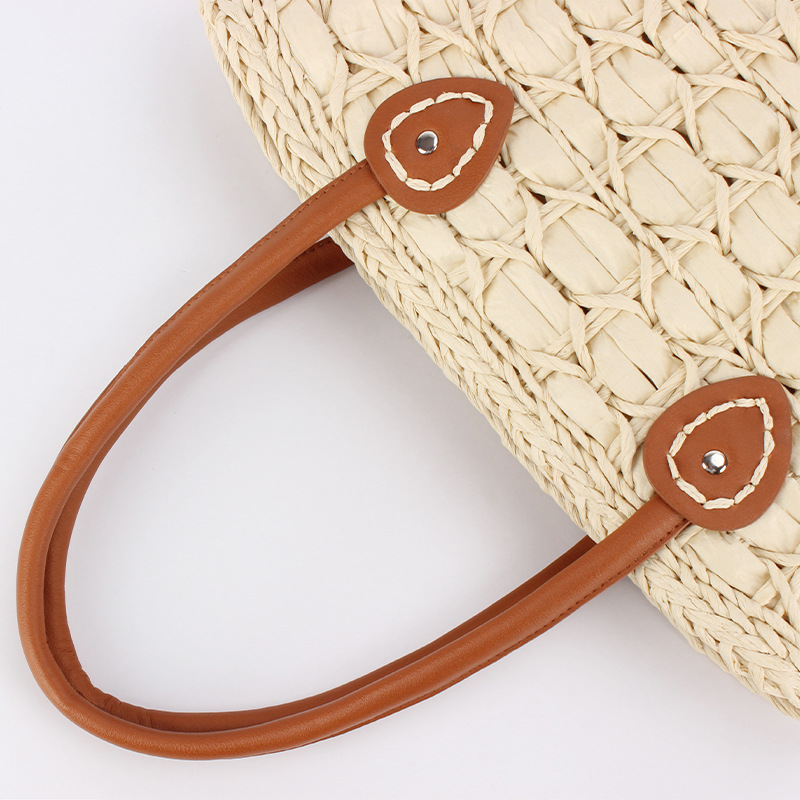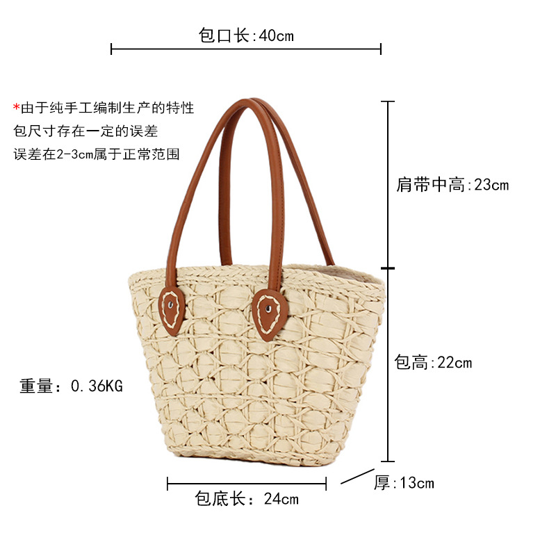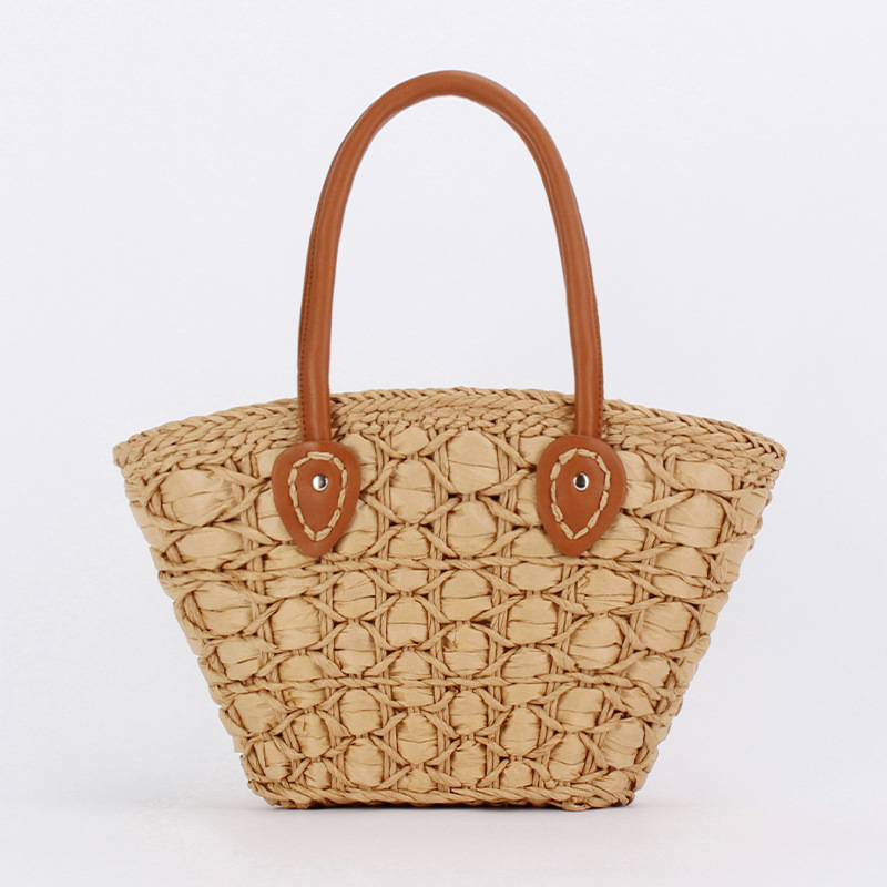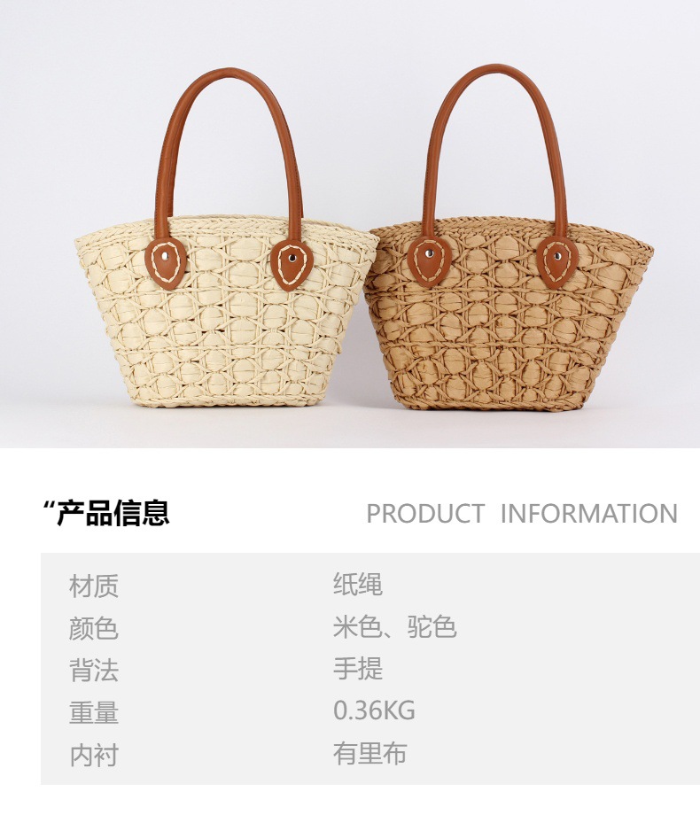 french simplicity plaid tote paper string woven mummy bag advanced texture vegetable basket bag travel vacation women's bag