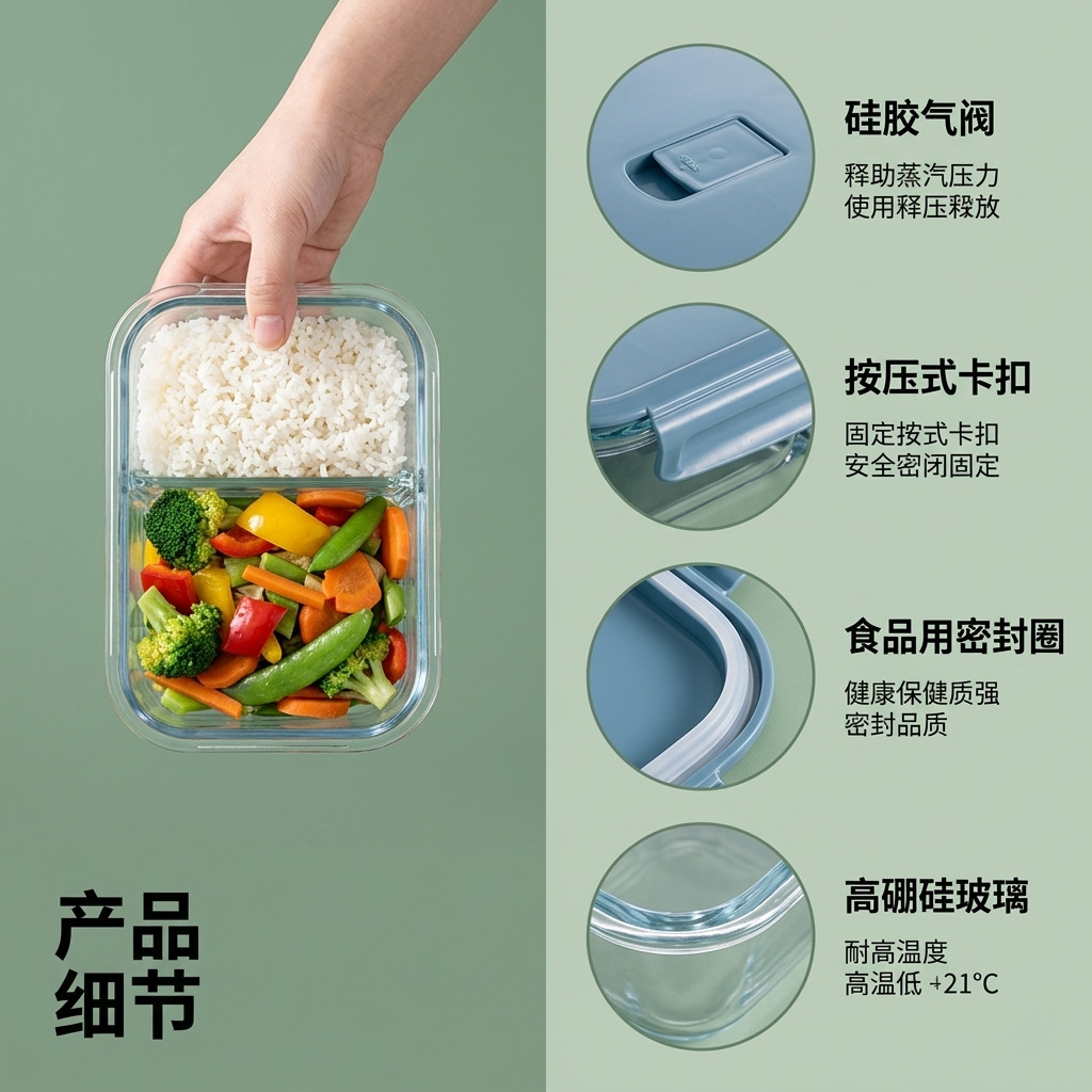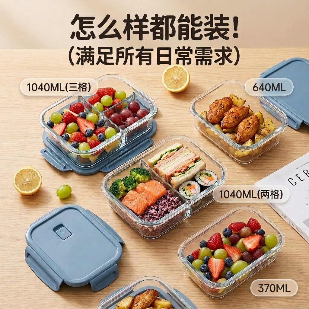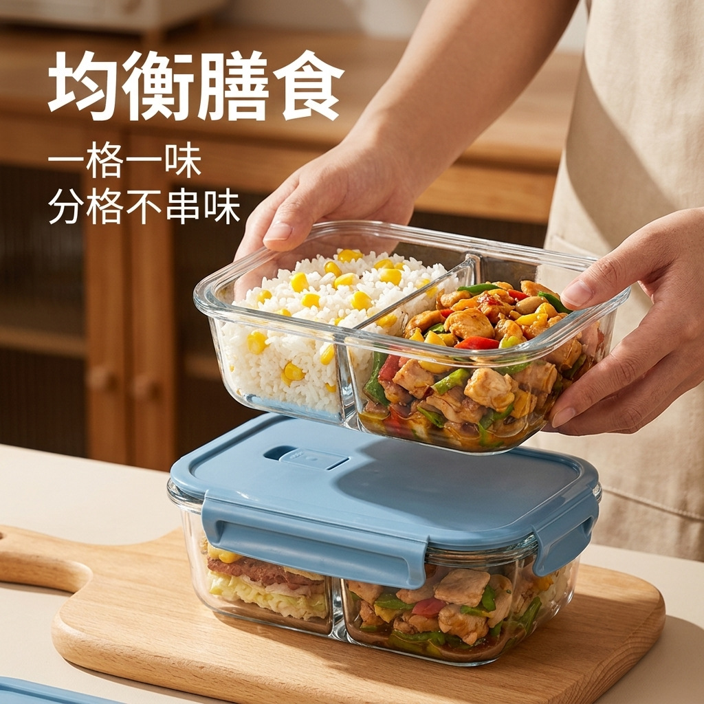 glass lunch box microwave-safe office workers' transparent clear with cover compartmentalized large-capacity fresh-keeping box student's fresh-keeping box