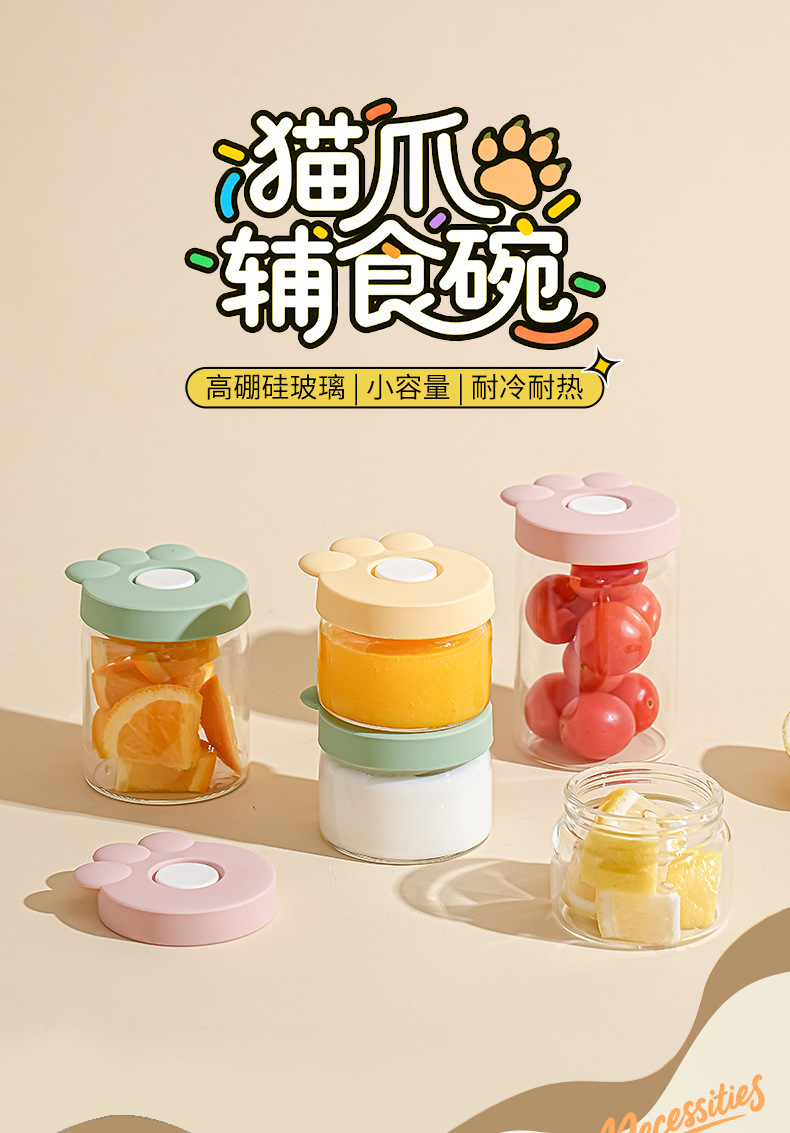 glass lunch box, microwaveable, with lid, sealed box, food storage box, fruit container, food-grade, mini baby supplementary food box