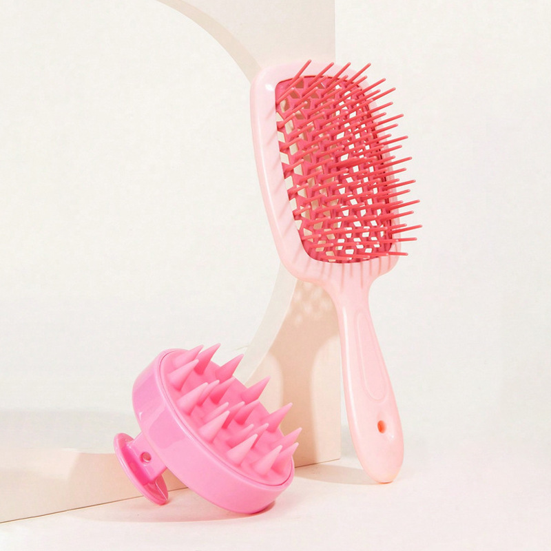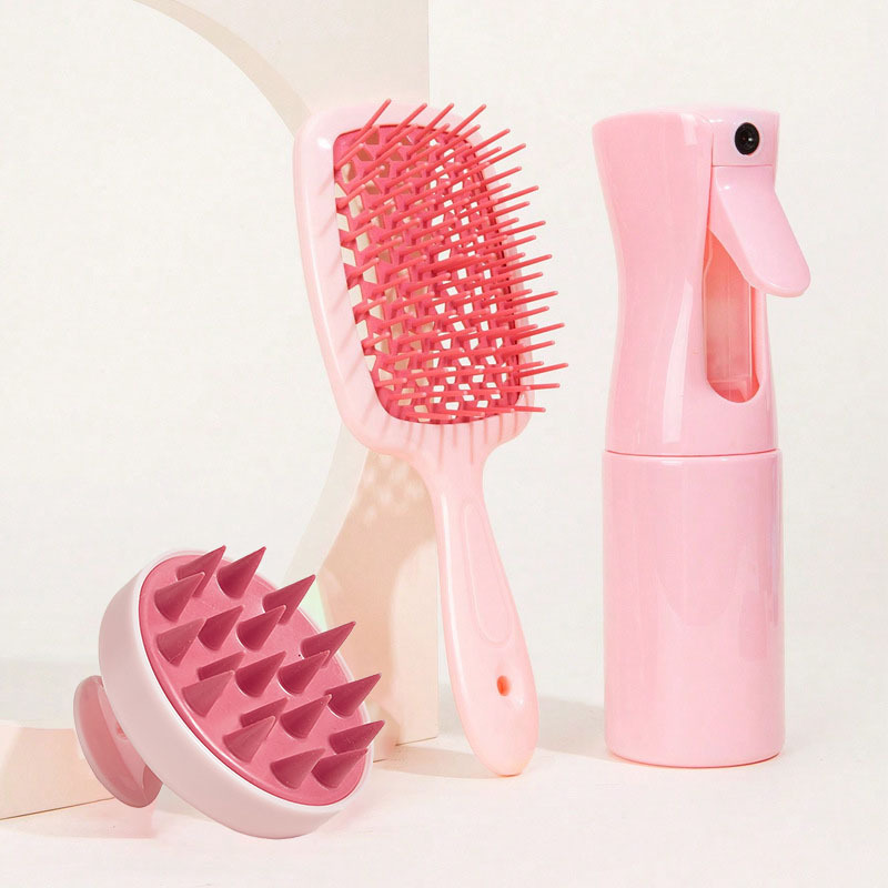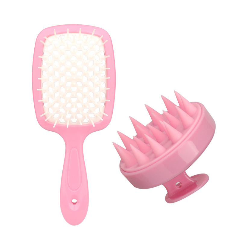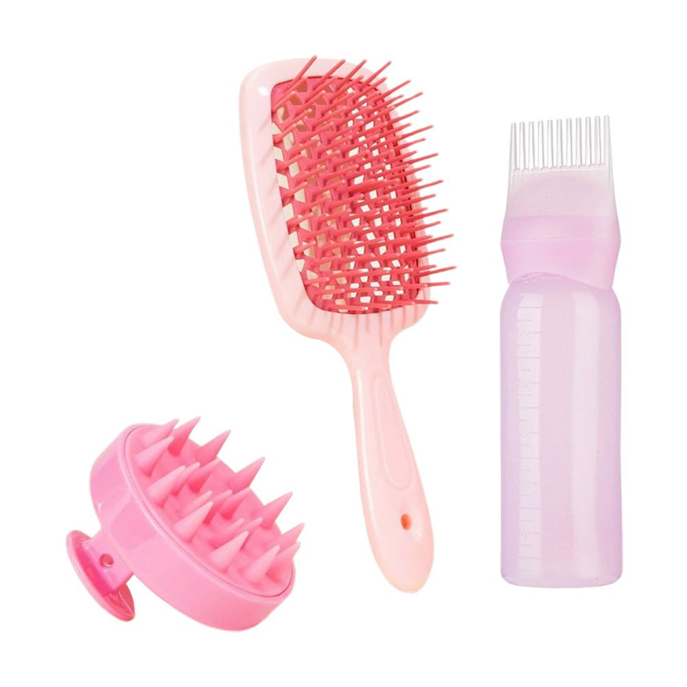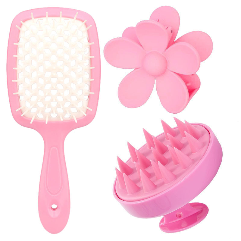 two pink combs + pink shampoo brush (two-piece set)