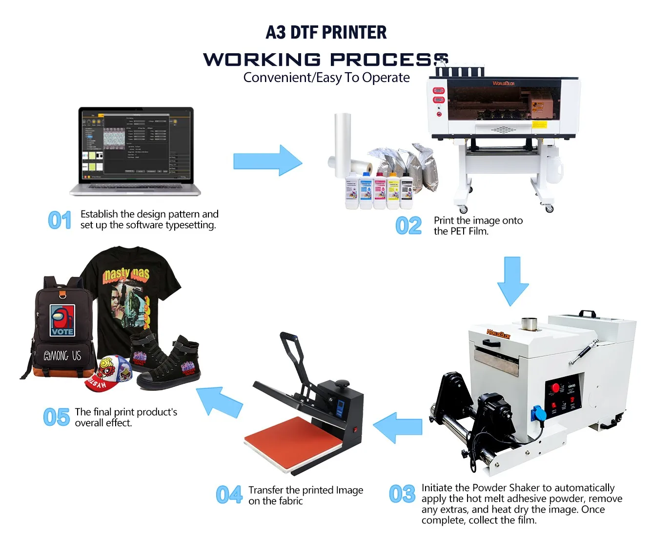 Main business: DTF printers, heat transfer printers, solvent-based printers, UV printers, banner printers, lamination machines, and heat transfer machines.
