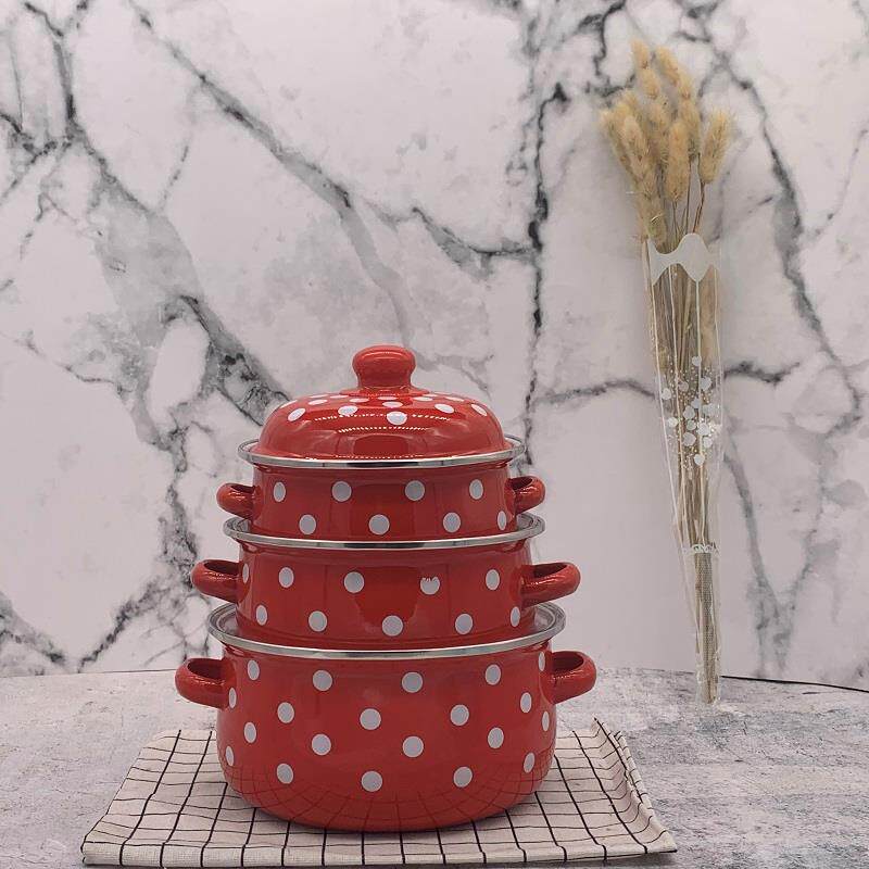 red and white dots three-piece enamel cover thickened