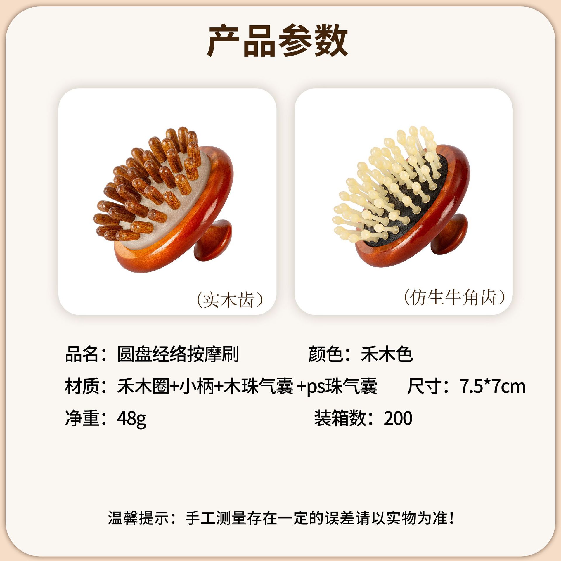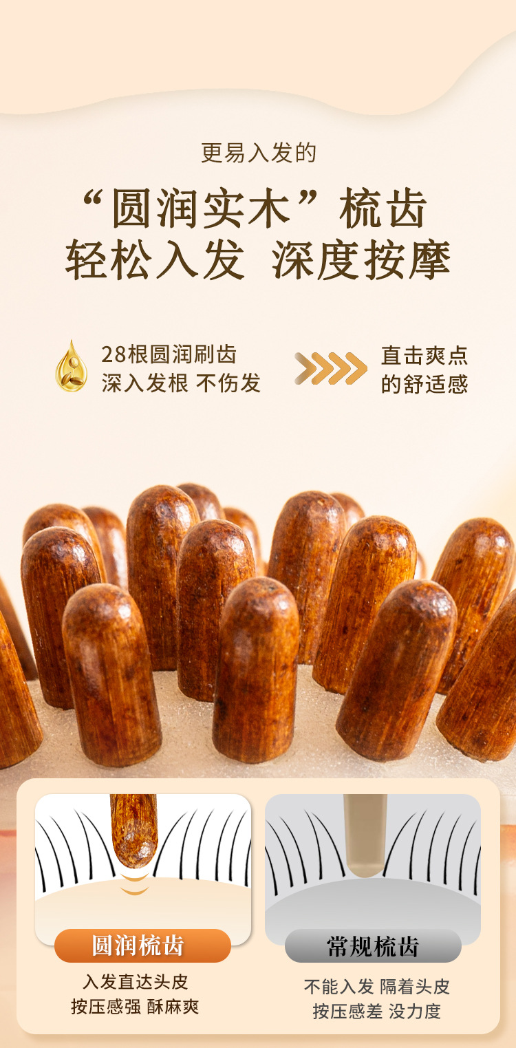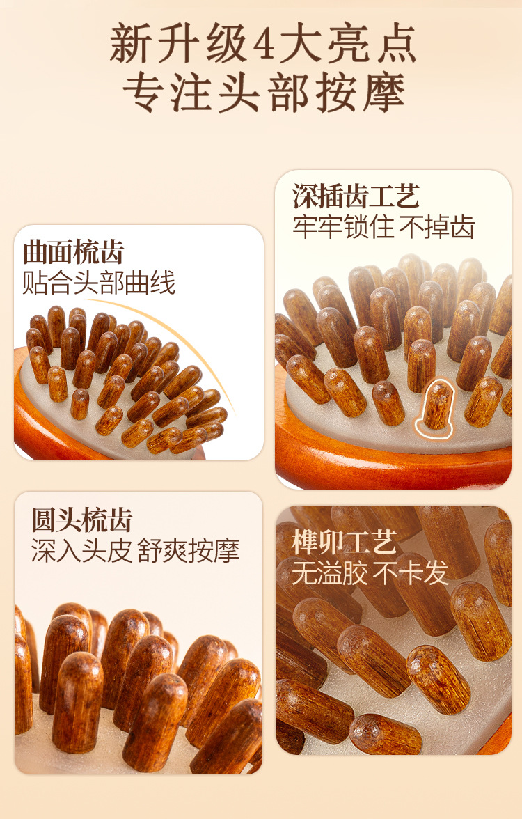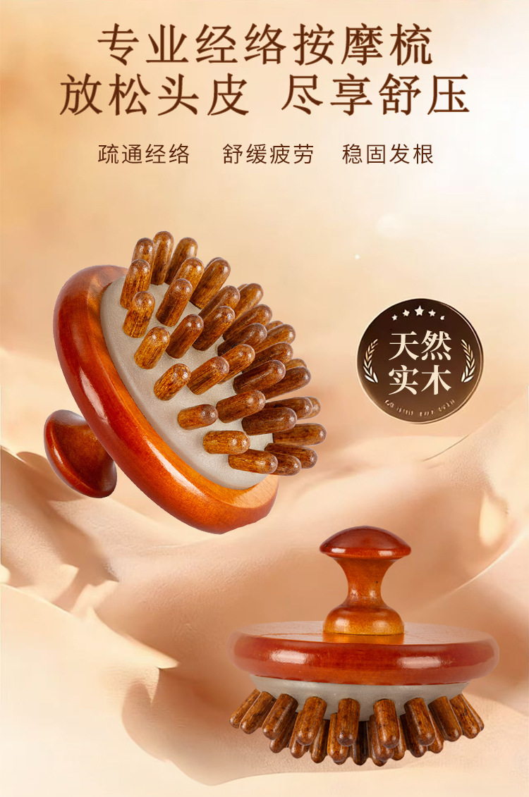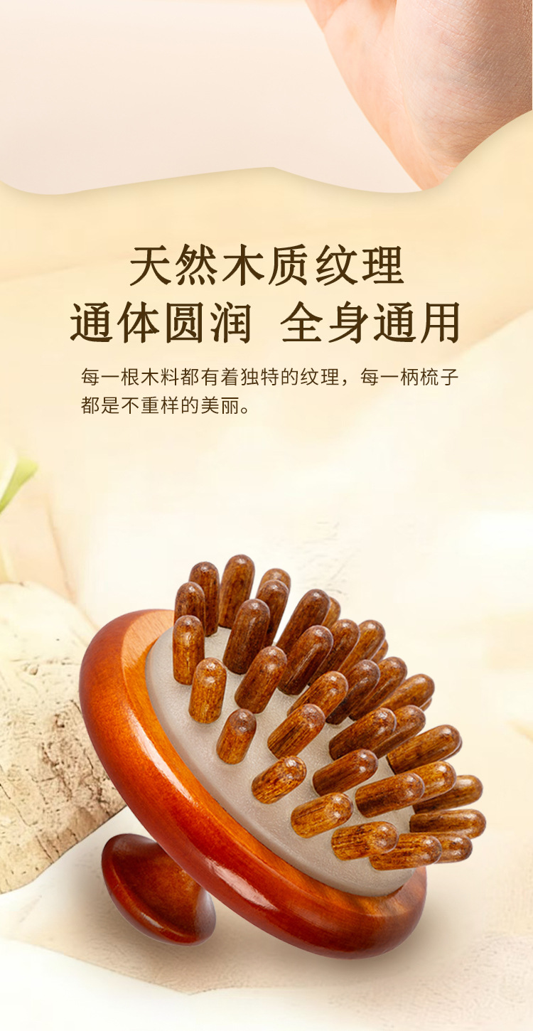 natural solid wood-disc massage comb (ps beads)