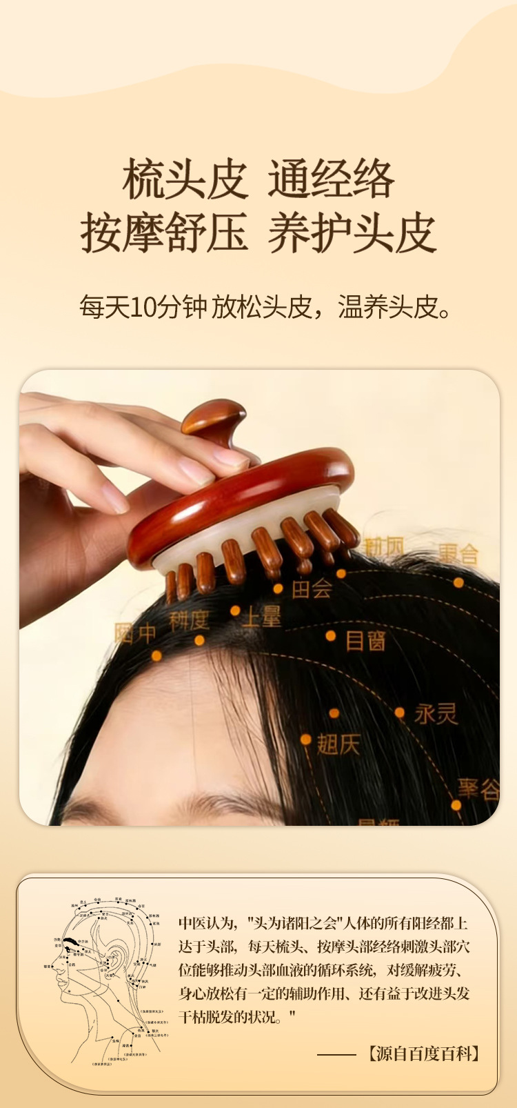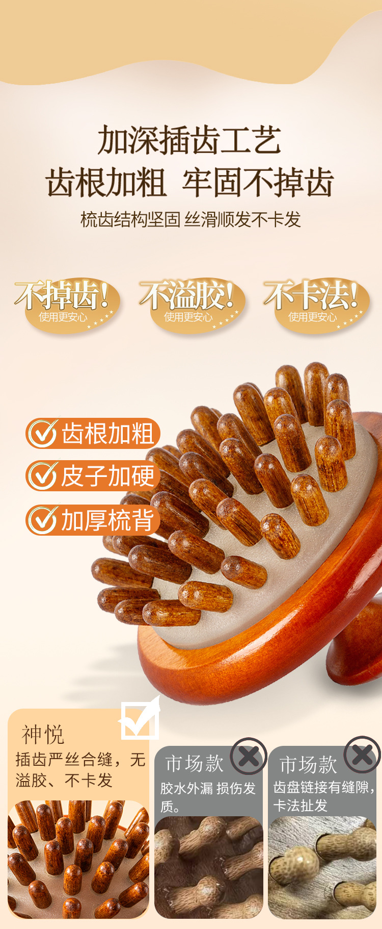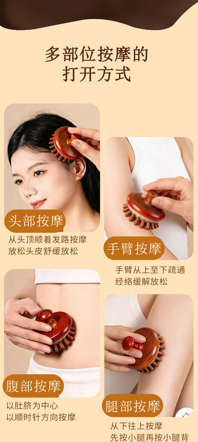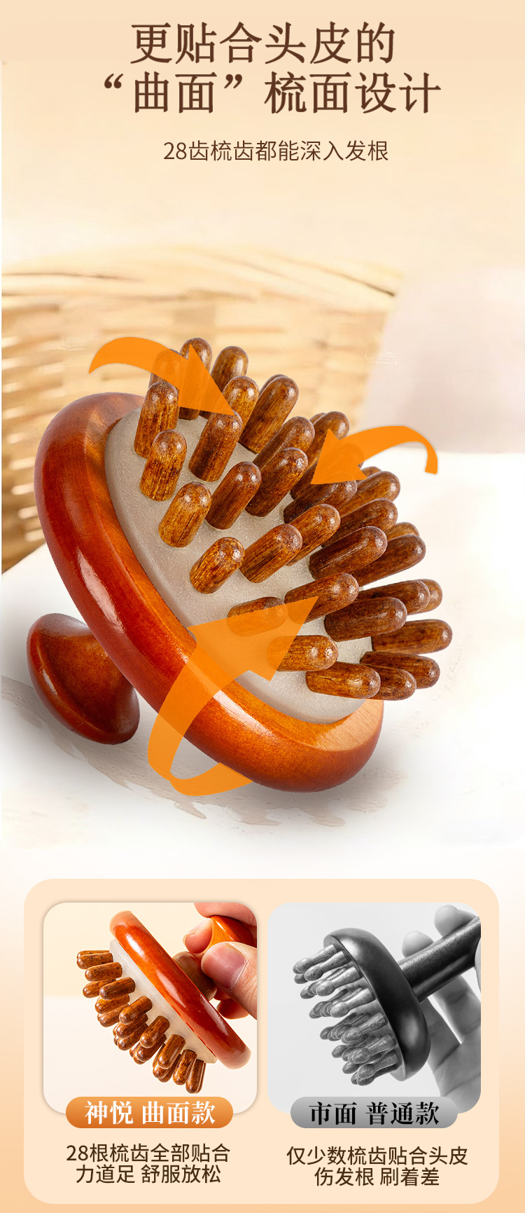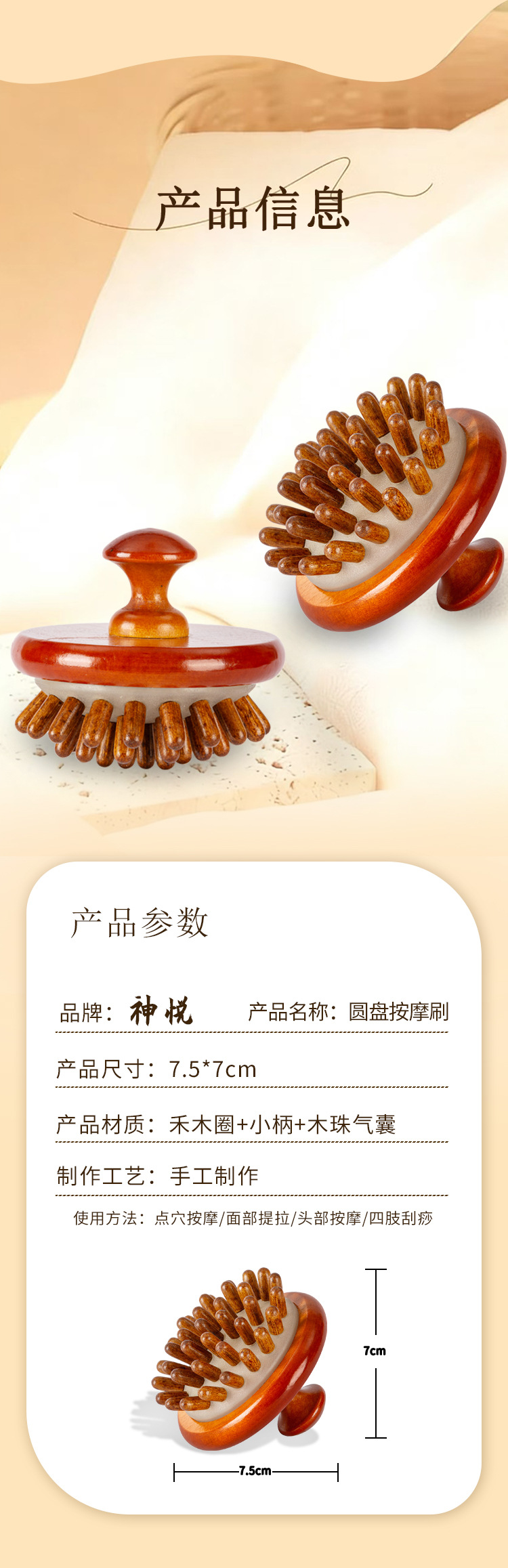 natural solid wood-disc massage comb (ps beads)