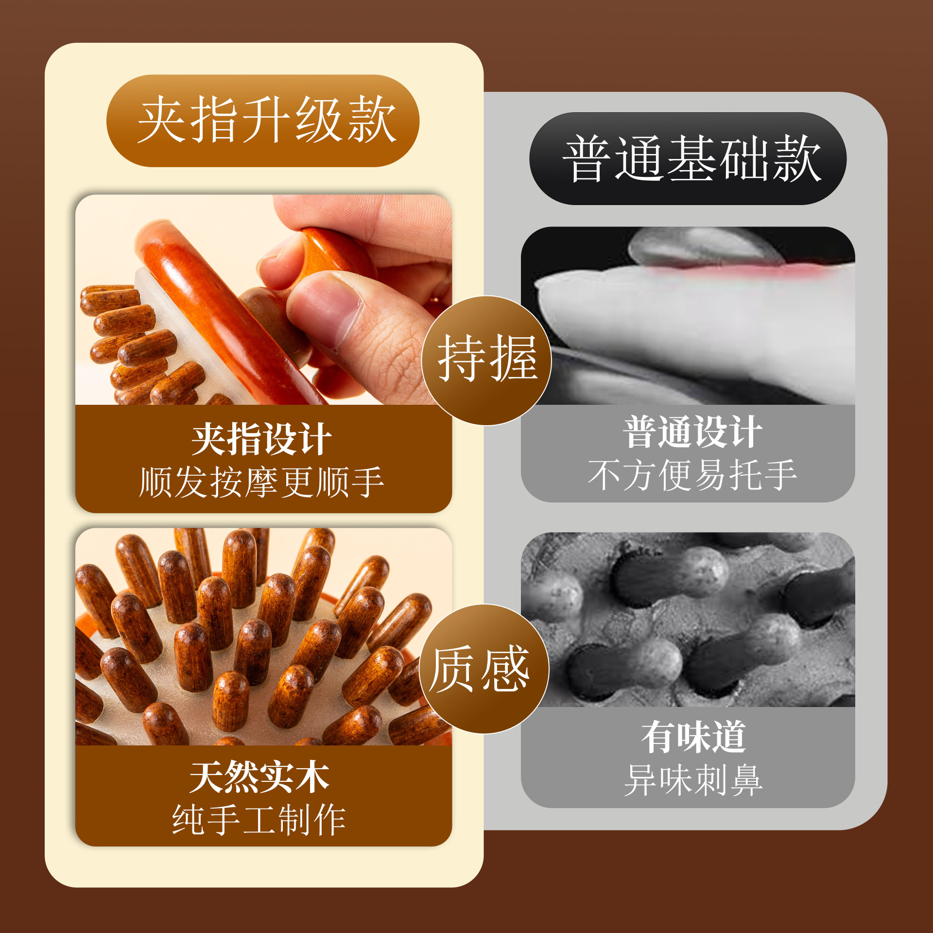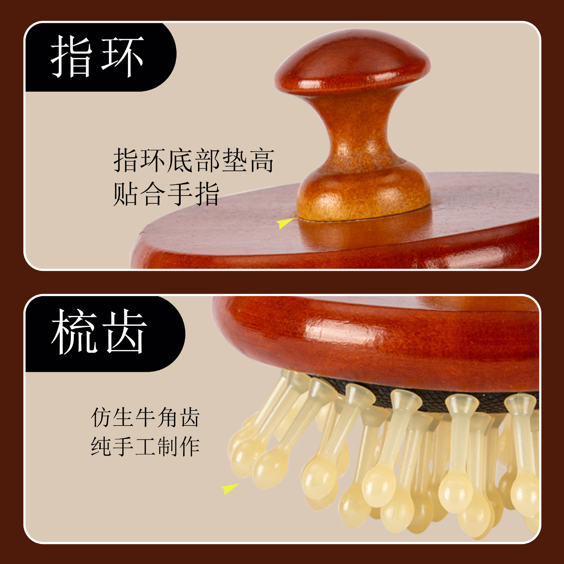 natural solid wood-disc massage comb (wooden bead style)