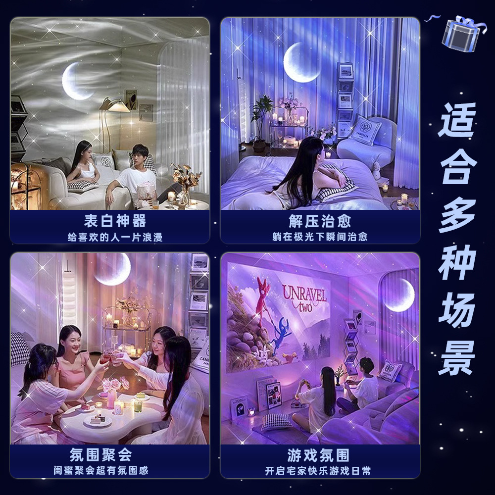 xy866-white-starry northern lights projection lamp-