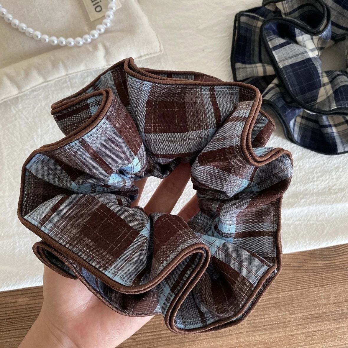 1399# blue brown-four-layer hair tie