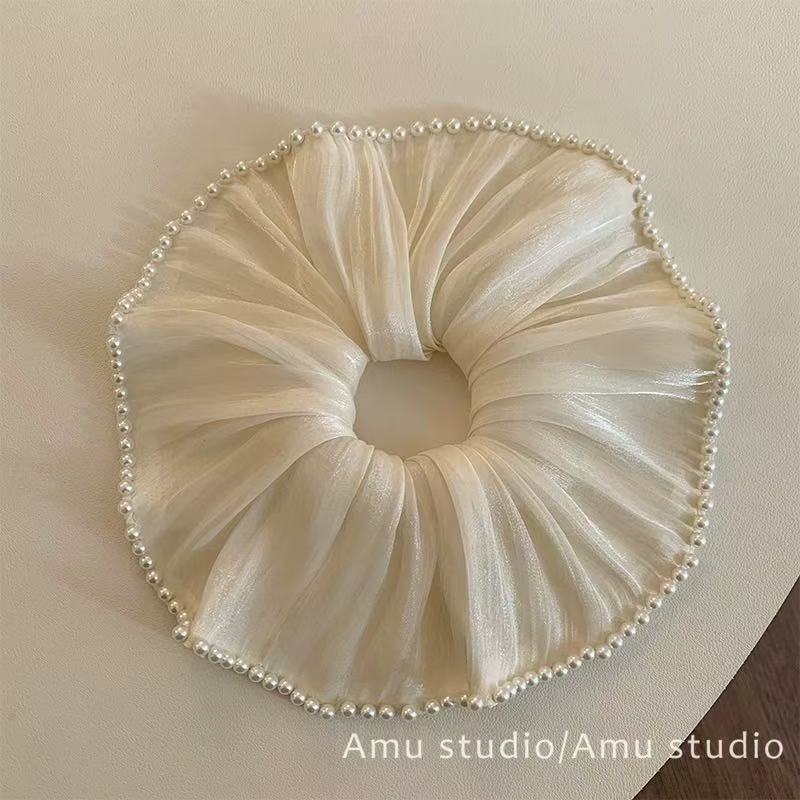 beige full-circle pearl sheen hair tie