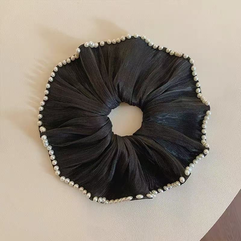 black full-circle pearl shimmering silk hair tie