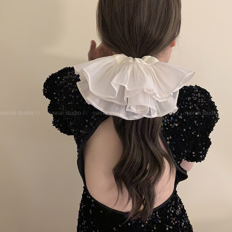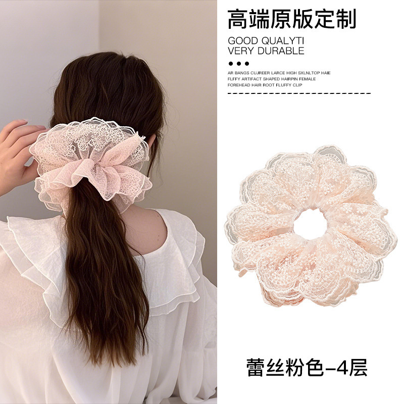 1# white lace large intestine hair ring (4 layers) 12cm