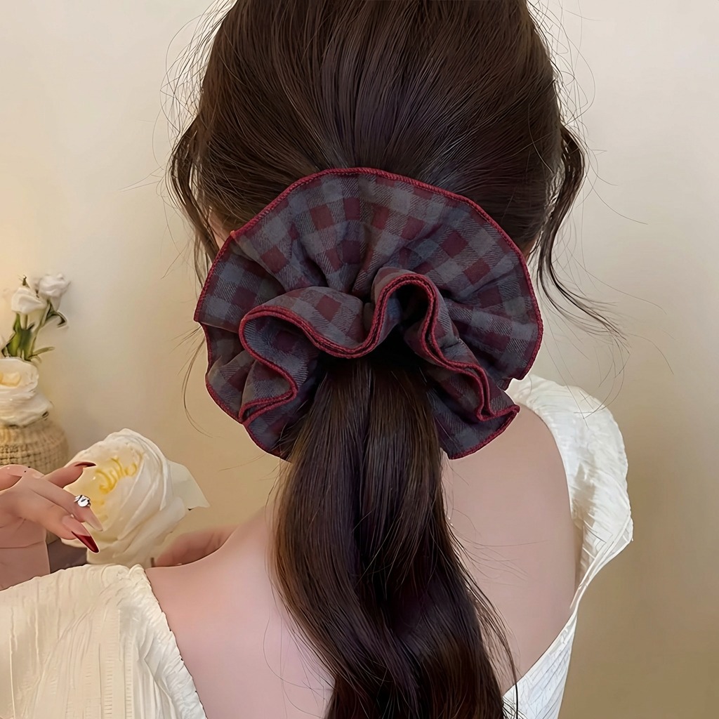 #1 purple double-layer plaid hair tie – approximately 18cm