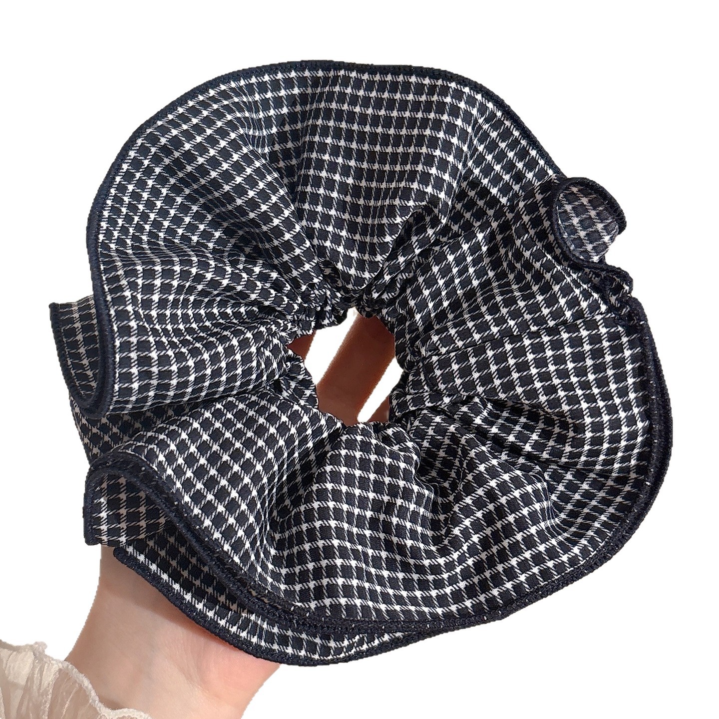 1# black pattern square scarf hair ring small size-20cm