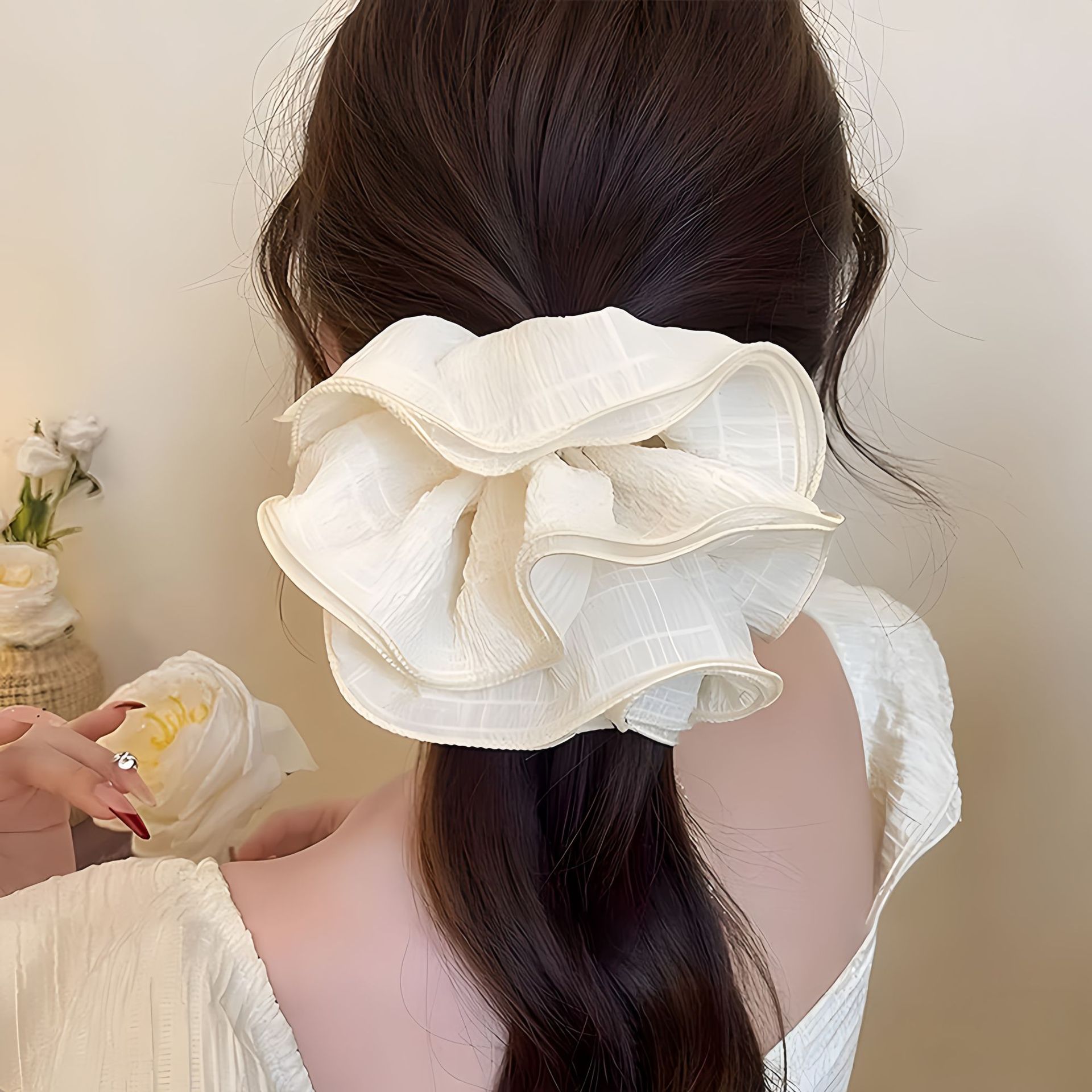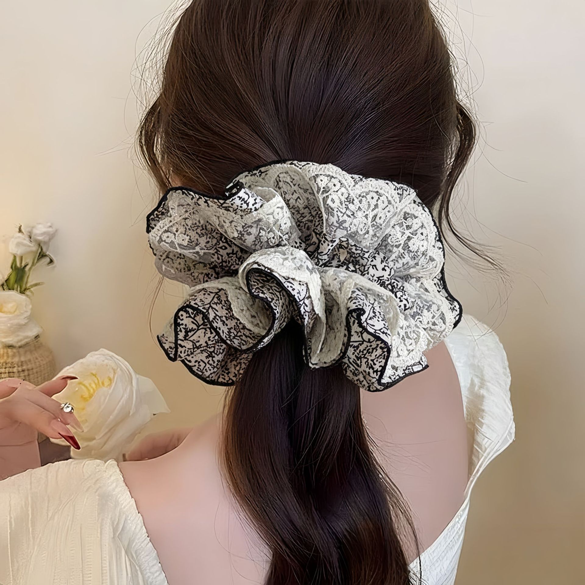 #1 white-lace large hair tie 21cm 18cm