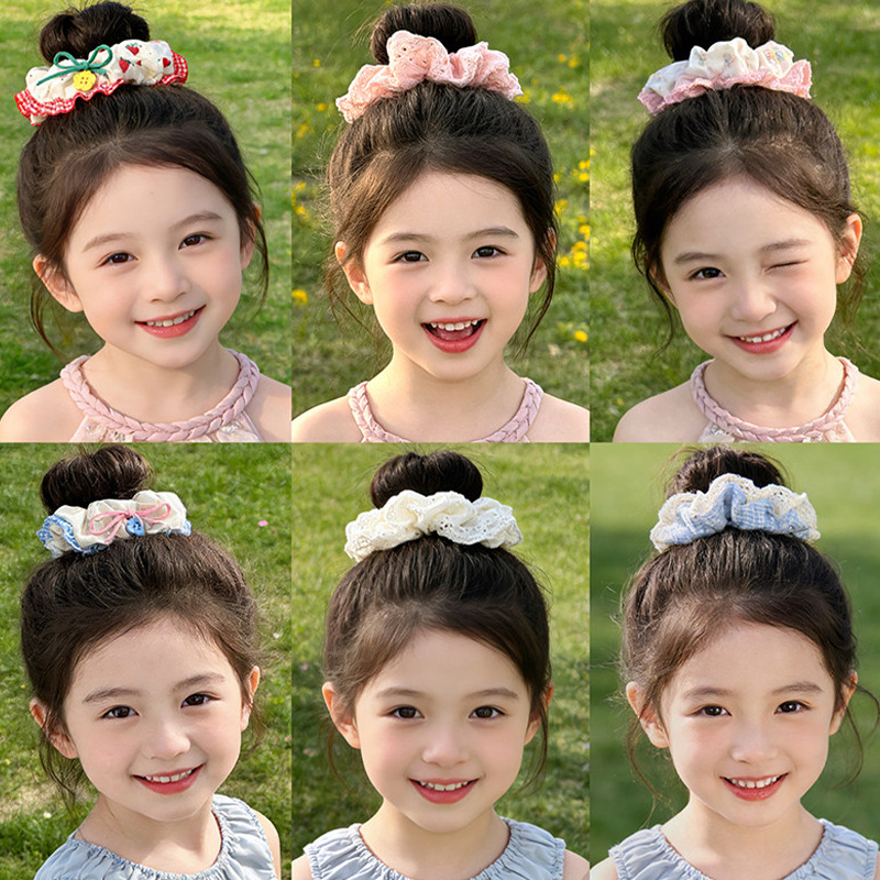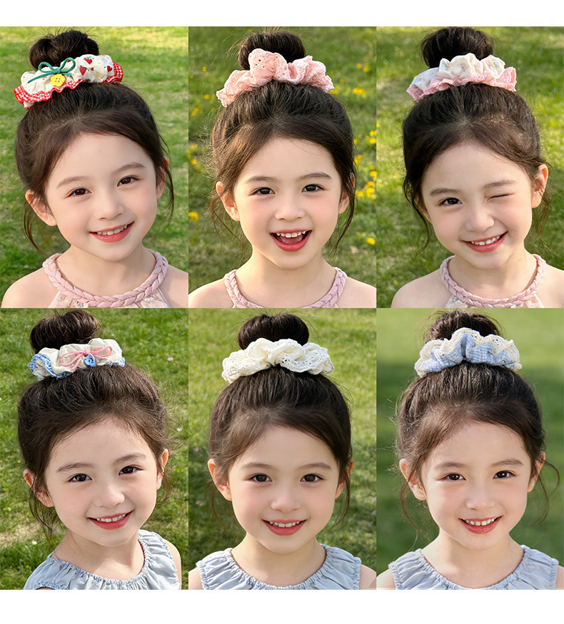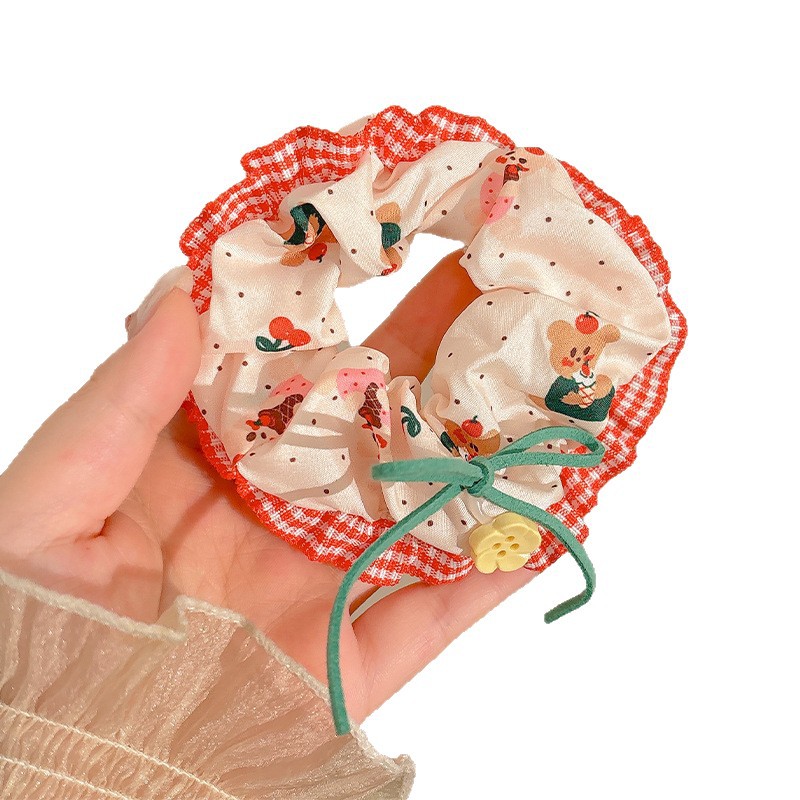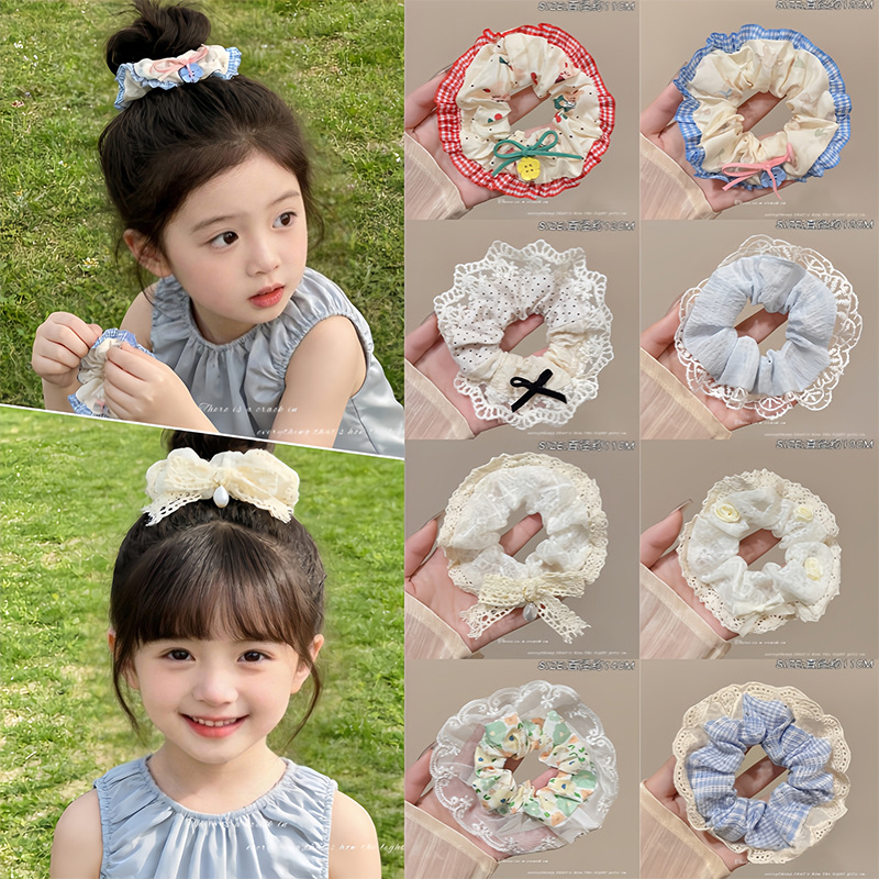 2# red plaid hair tie with lace trim, 5cm each