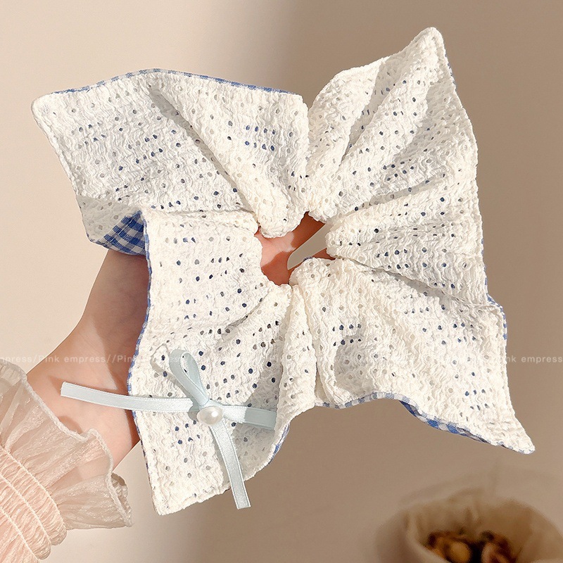 1# blue and white bow large intestine ring (pure white) 10cm