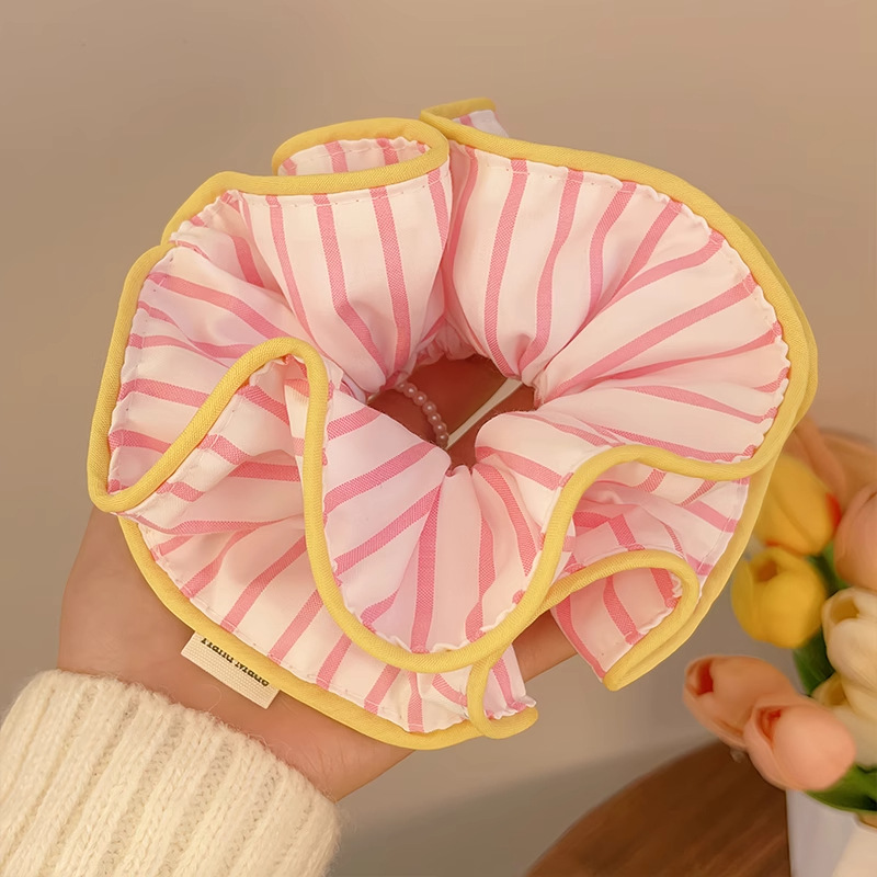 pink striped double-layer hair tie