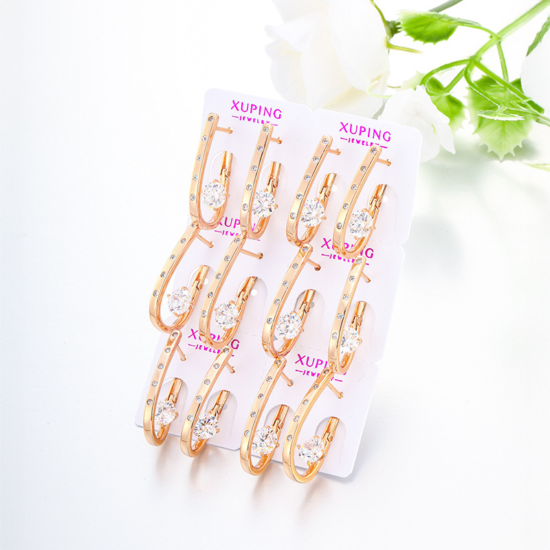 xuping special-interest design simple retro style personalized ear clips copper alloy plated with 18k gold russian geometric u-shaped earrings
