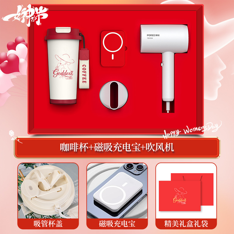 [goddess festival special edition three-piece set] linglan coffee cup + magnetic suction power bank + borui hair dryer