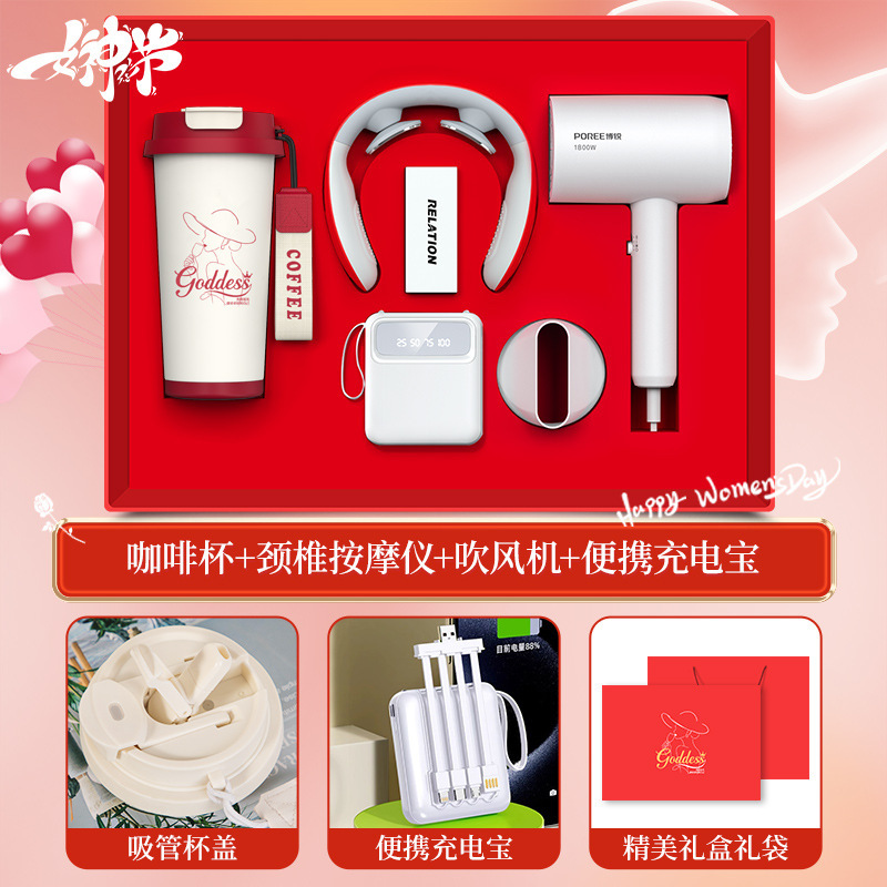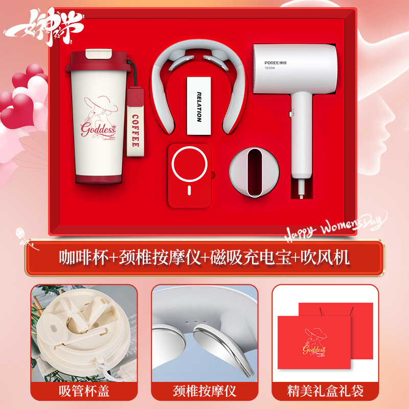 【women’s day special four-piece set】linglan cup + borui hair dryer + neck massager + with cable power bank