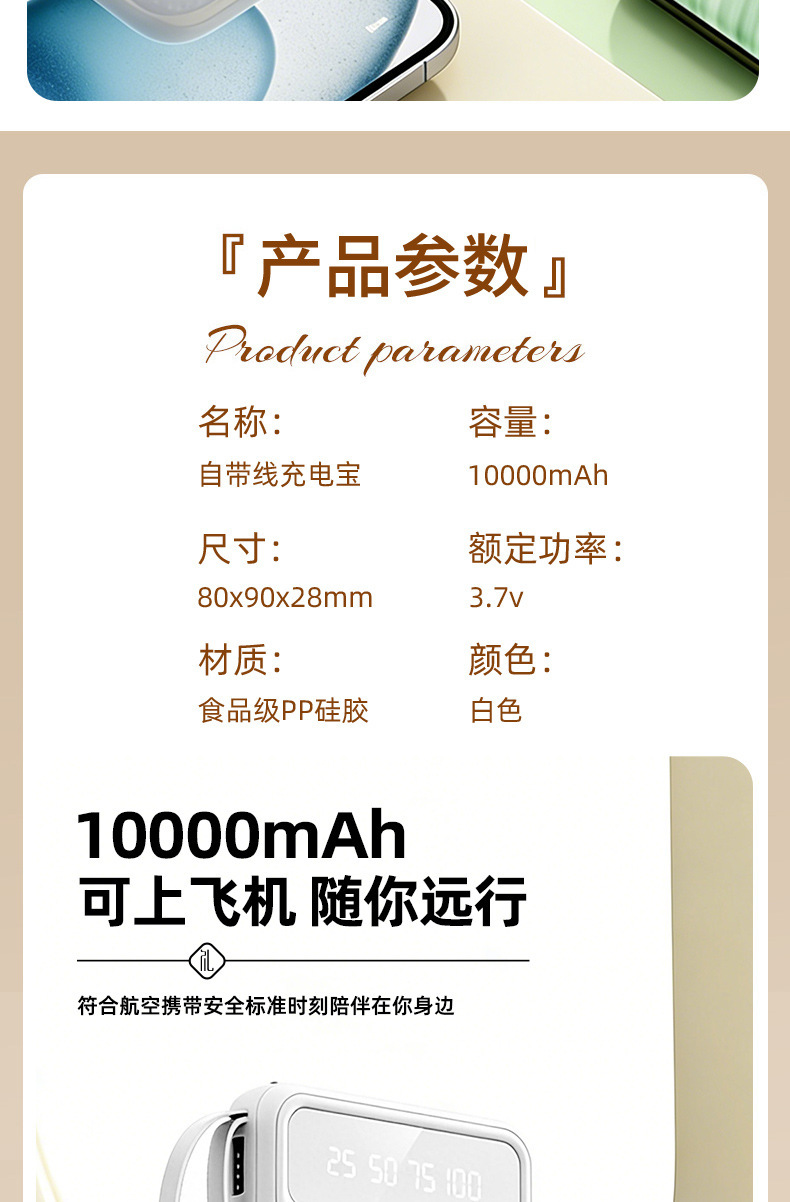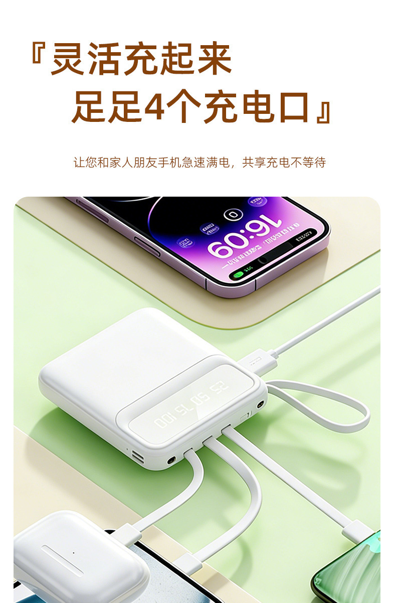[white two-piece set] power bank with cable + borui hair dryer