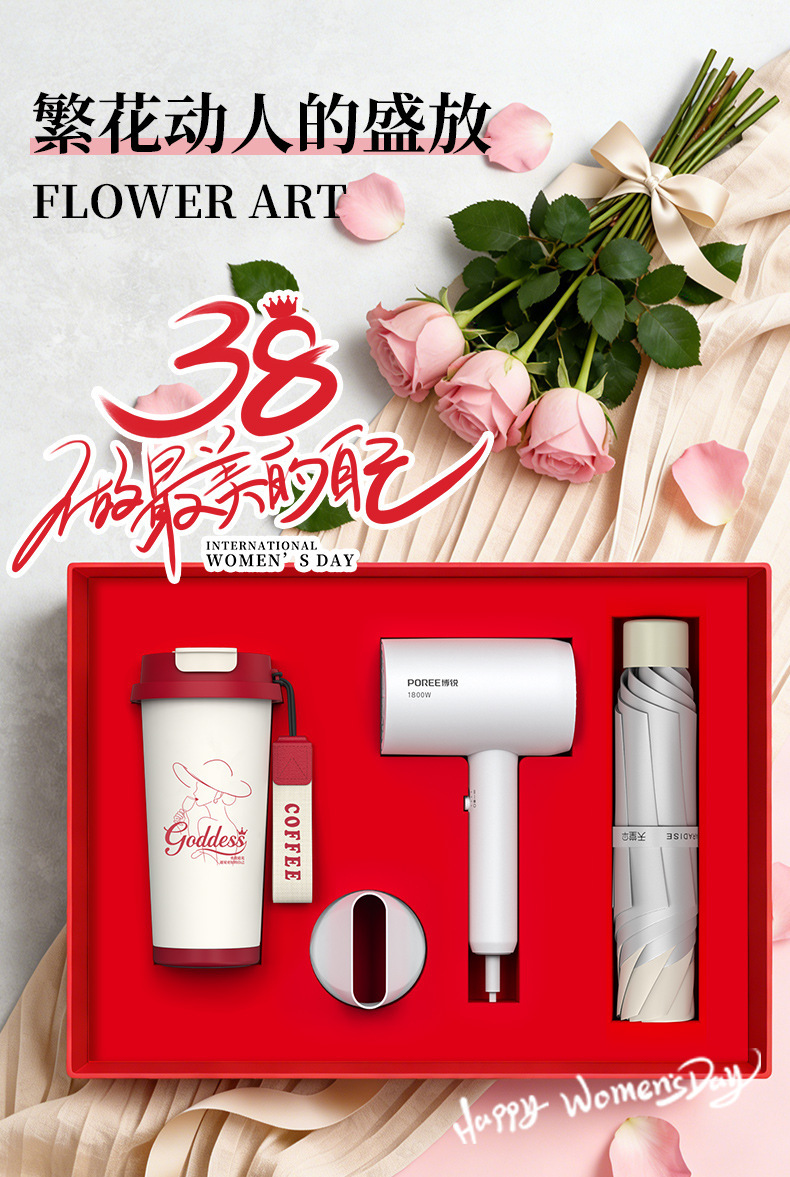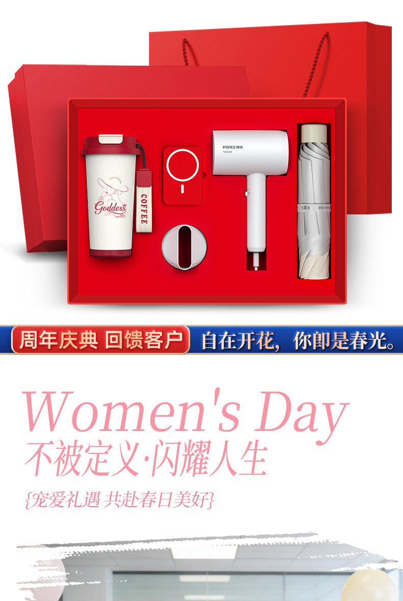 【women's day special four-piece set】linglan cup + boray hair dryer + paradise umbrella + with cable power bank