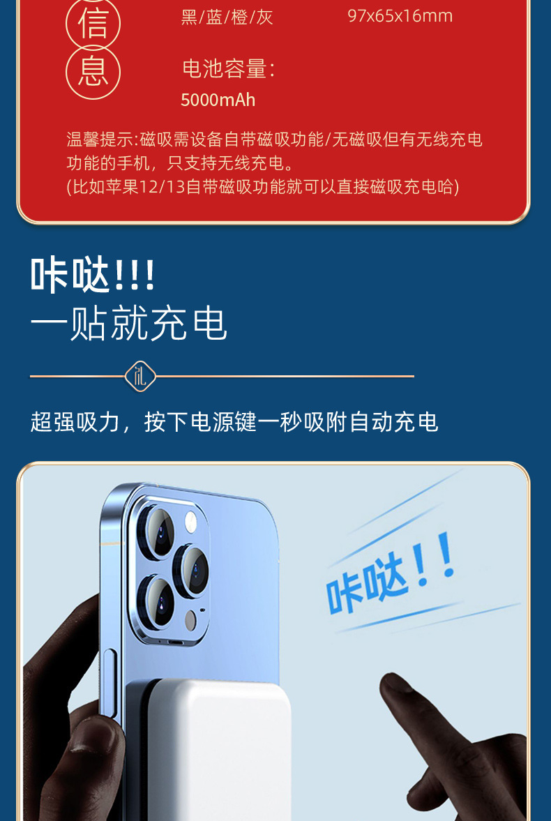 [red two-piece set] magnetic suction power bank + borui hair dryer