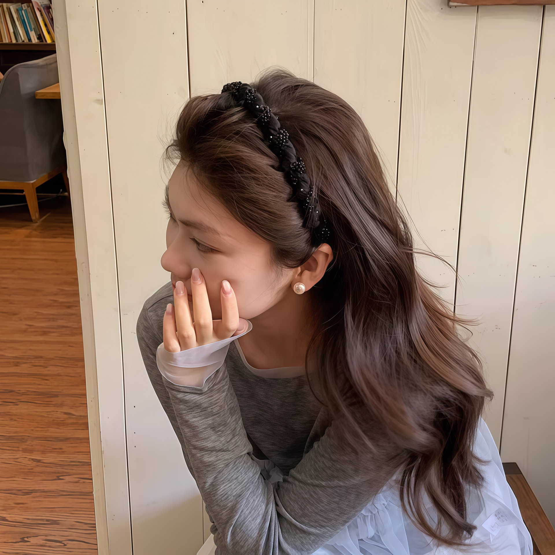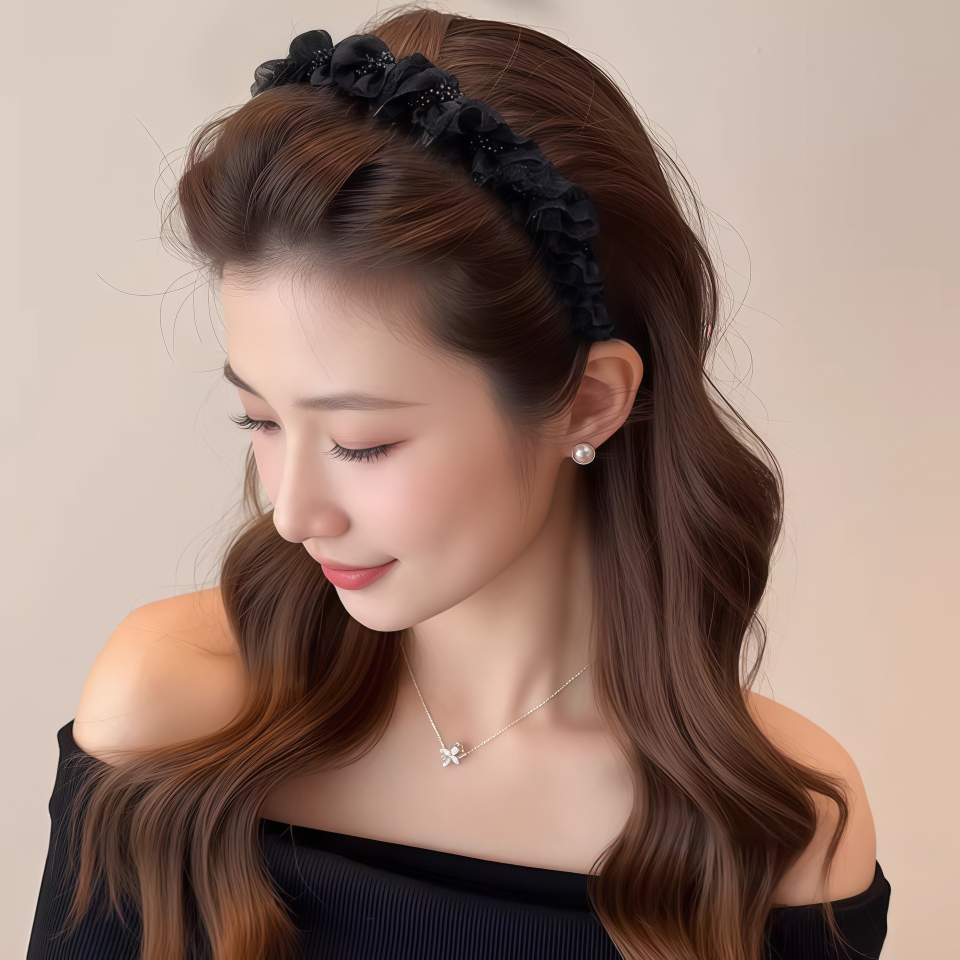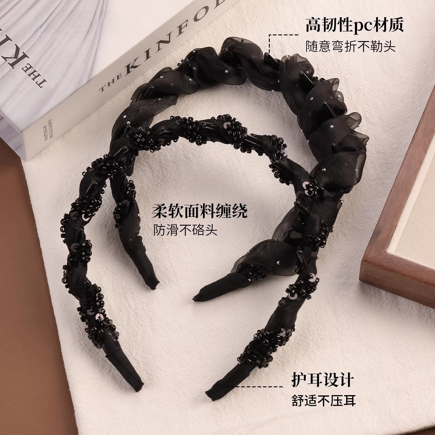 black beaded wave headband