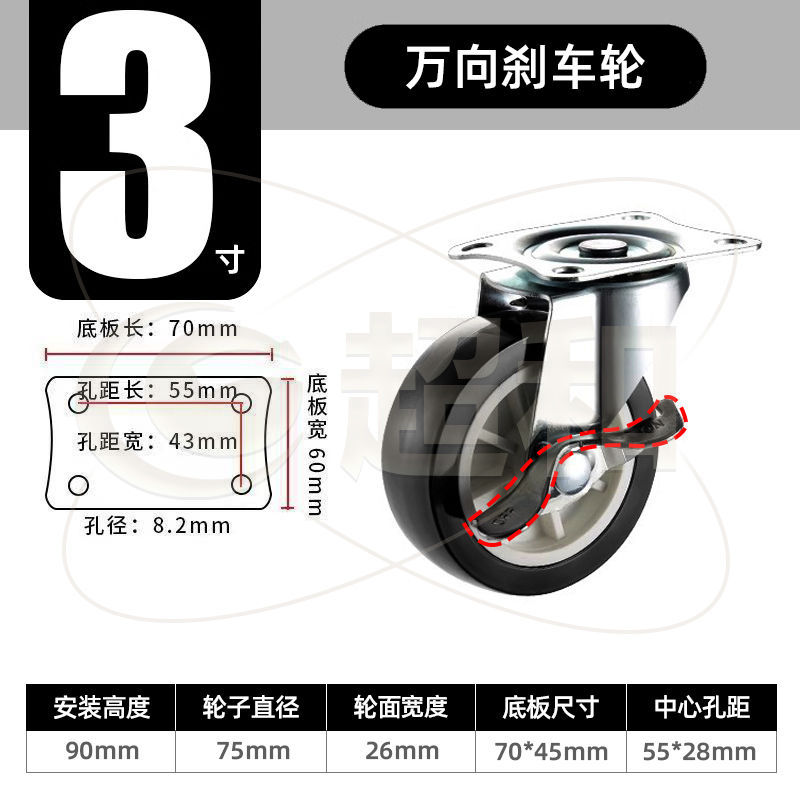 3-inch swivel brake caster = black
