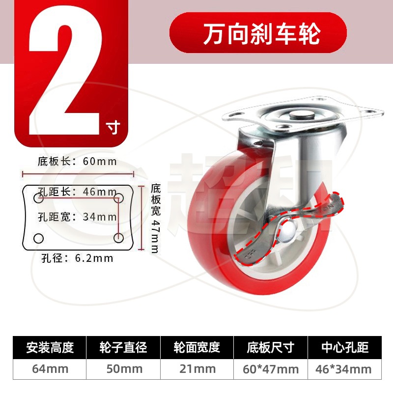 2-inch swivel brake caster = red