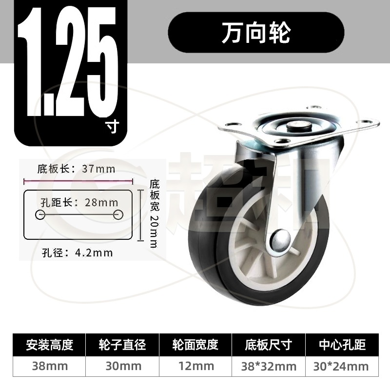 1.25-inch universal wheel = black