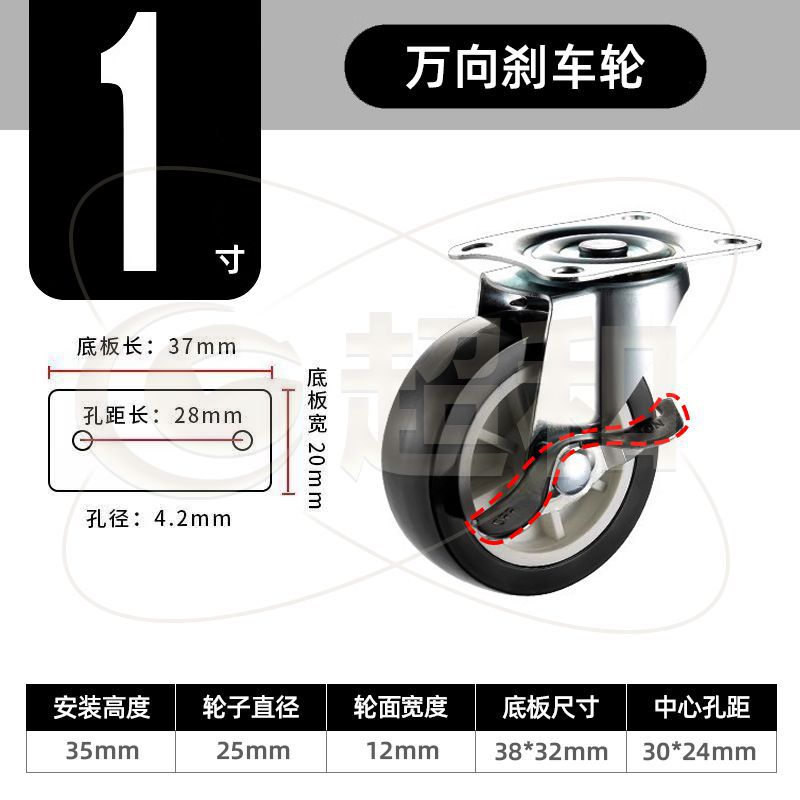 1-inch swivel brake caster = black