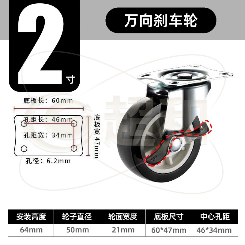 2-inch swivel brake caster = black