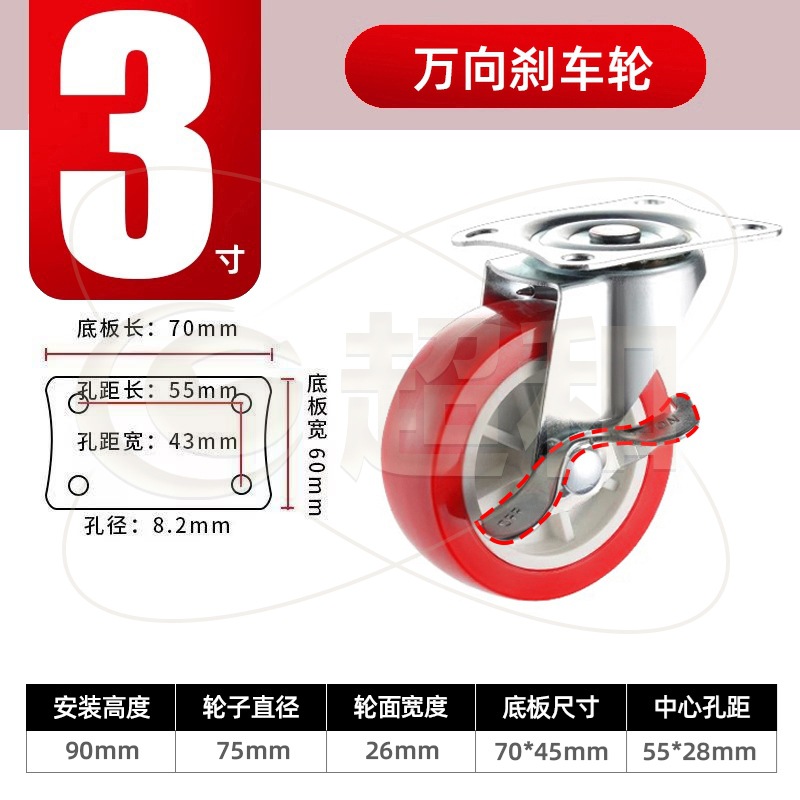3-inch universal brake wheel = red