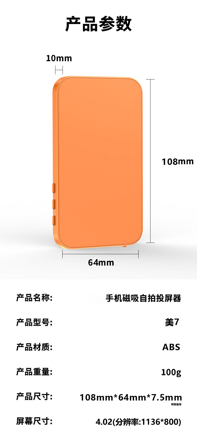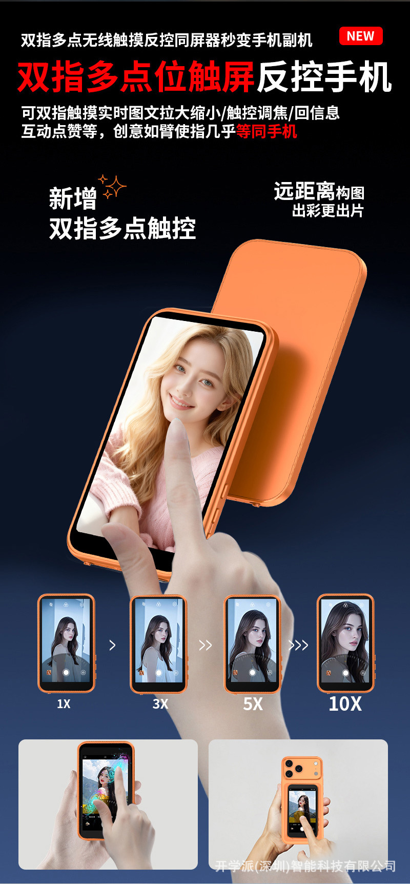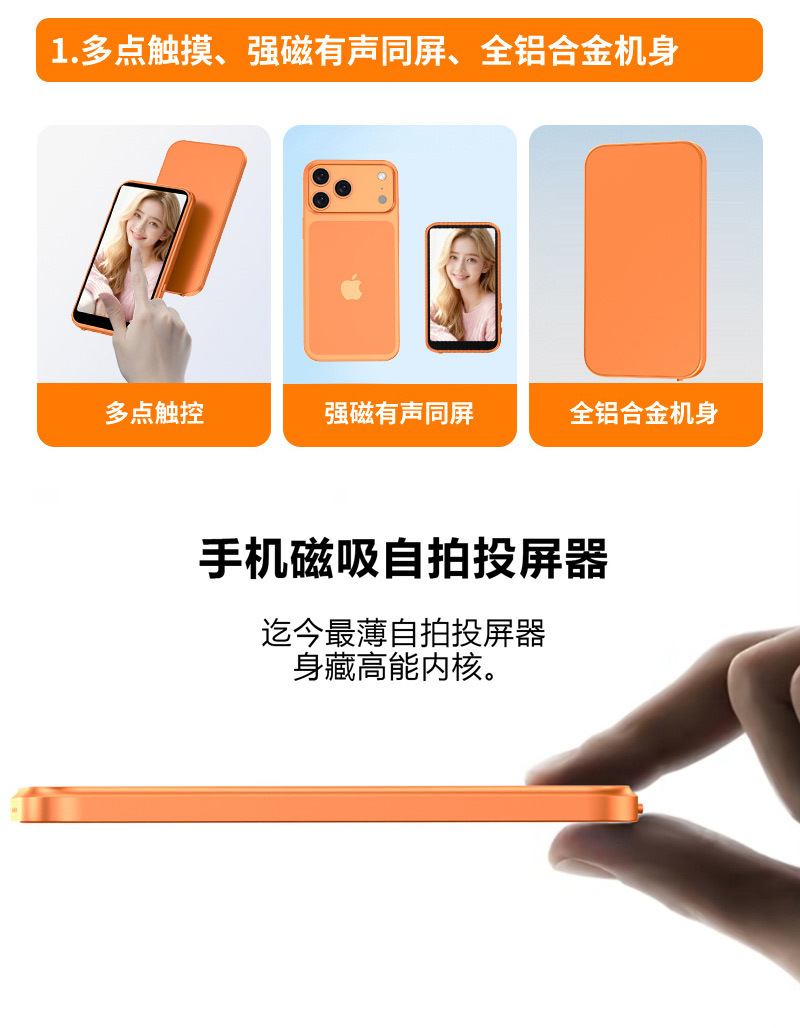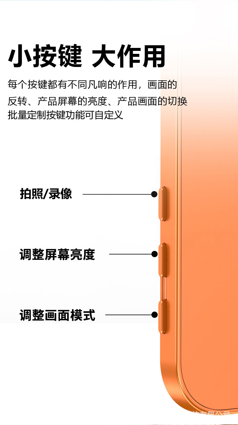 3.97h7 orange, with speaker, zoom function, and a camera shutter button
