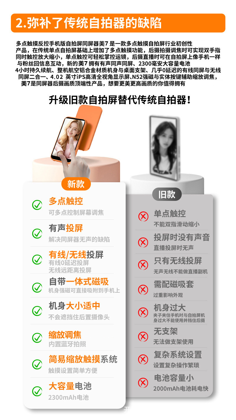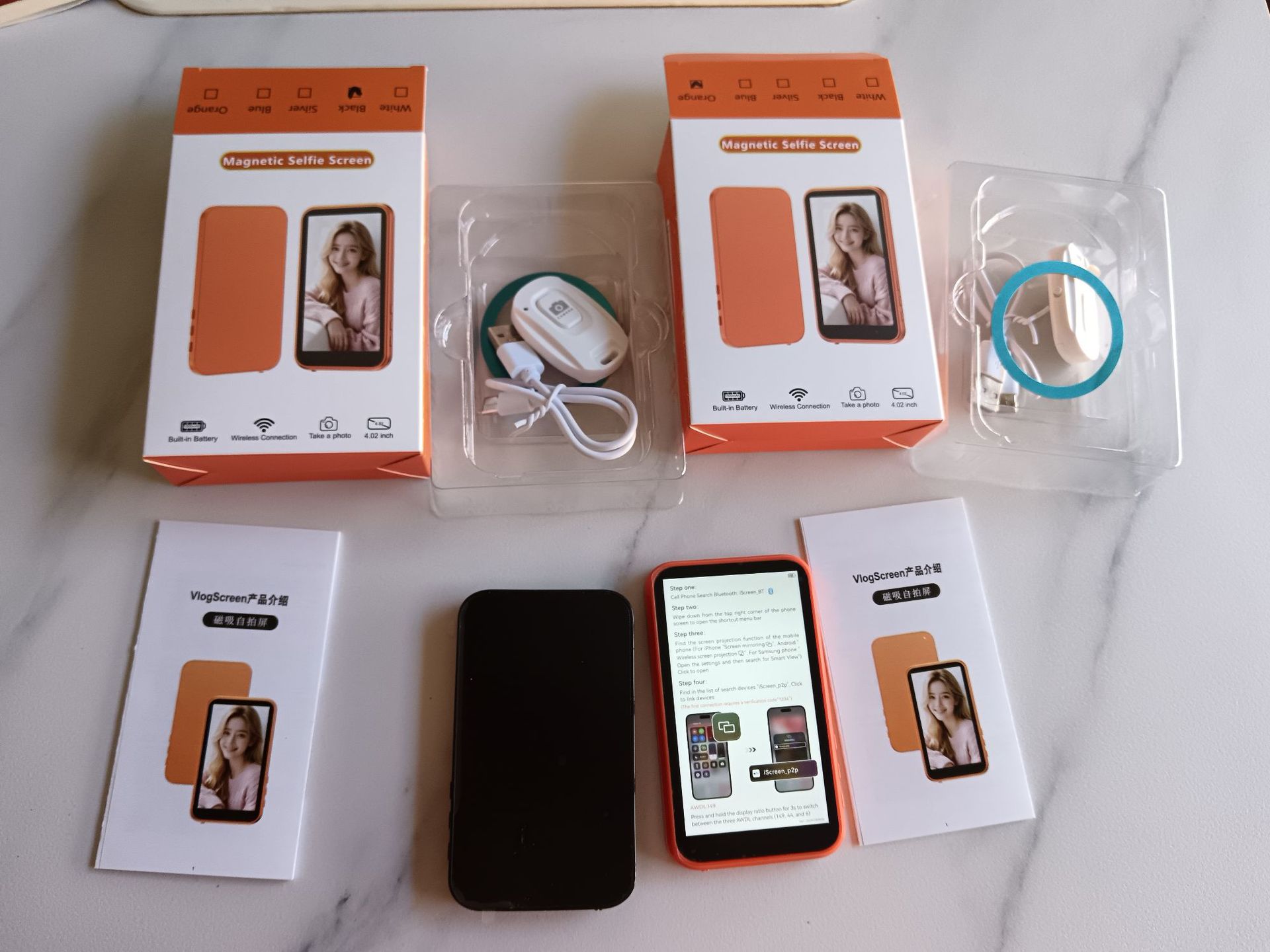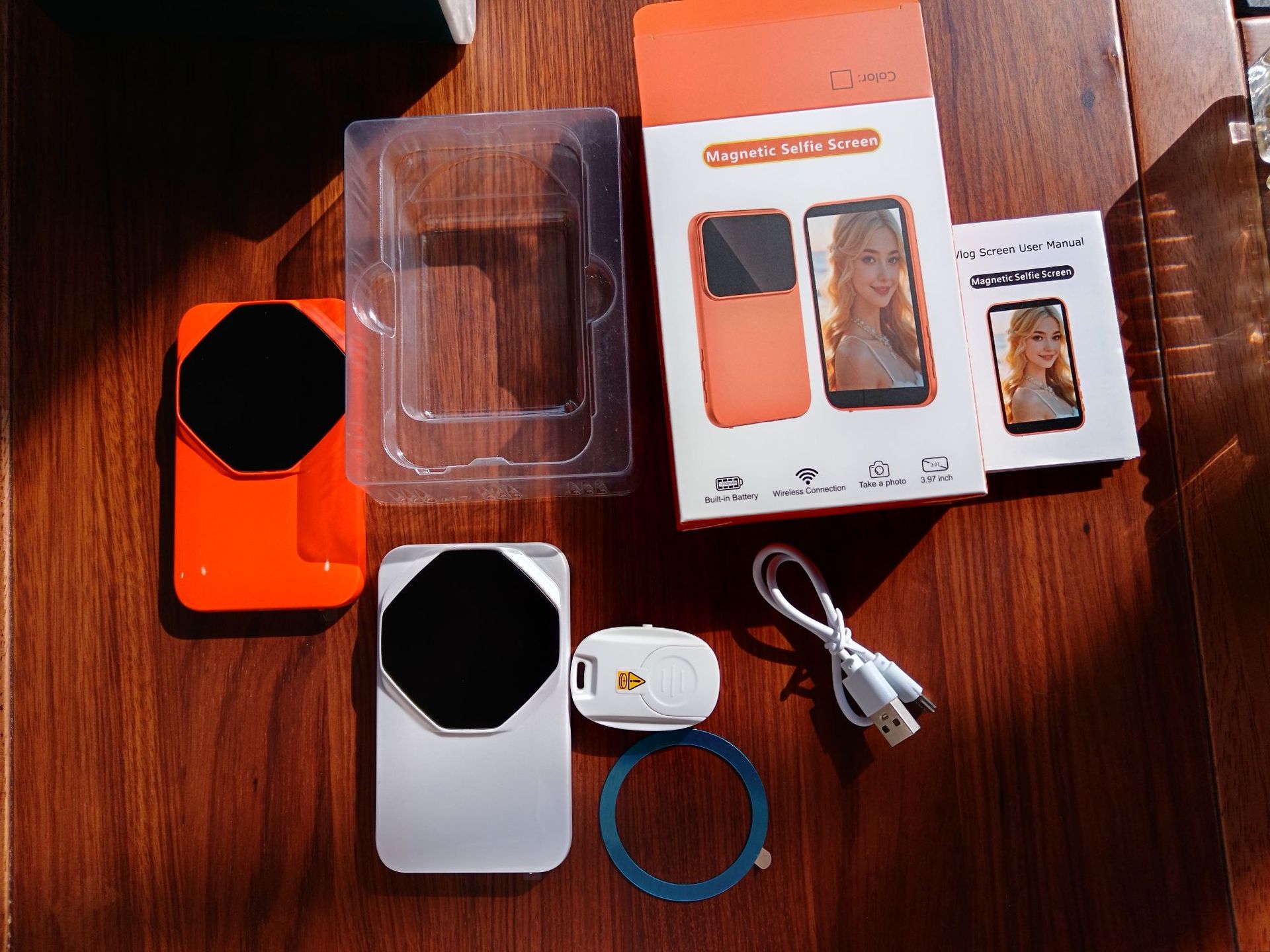 3.97h7 orange, with speaker, zoom function, and a camera shutter button