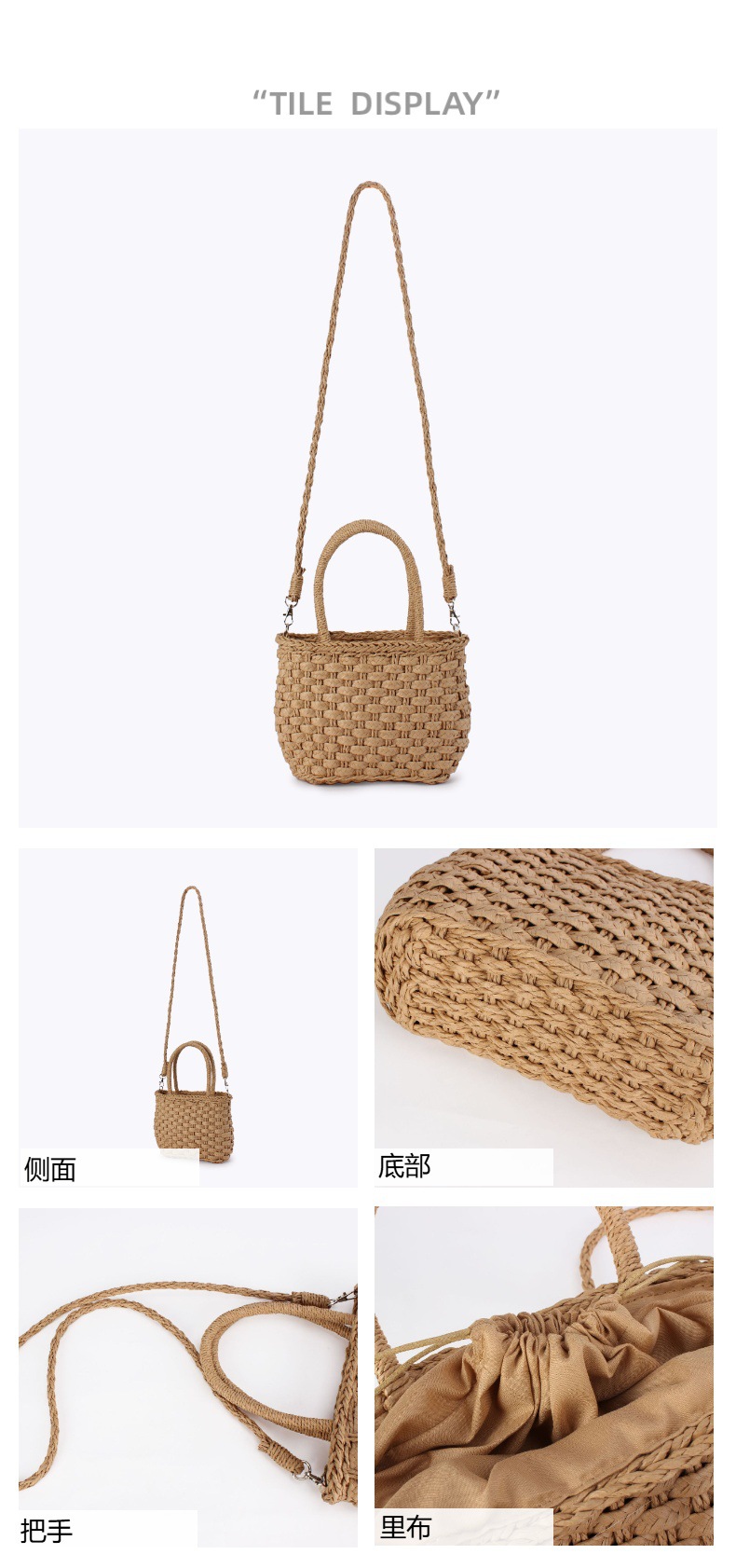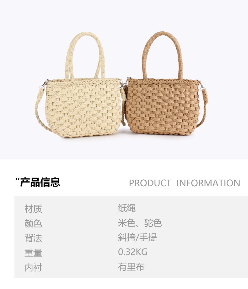 new paper string portable dual-use crossbody bag summer seaside leisure vacation beach bag internet celebrity solid color women's woven bag