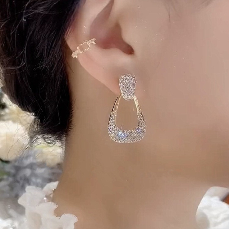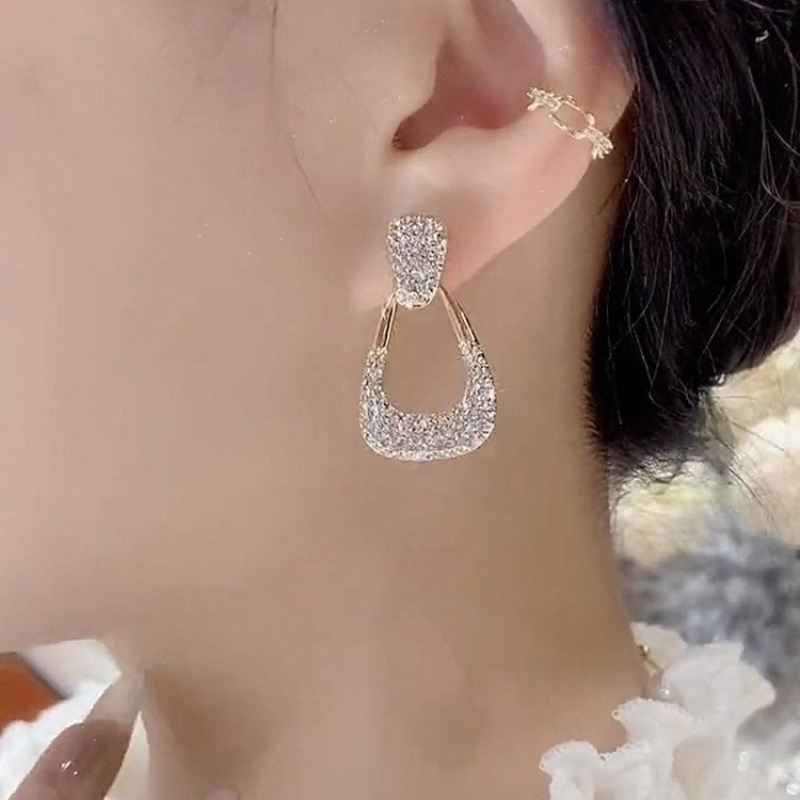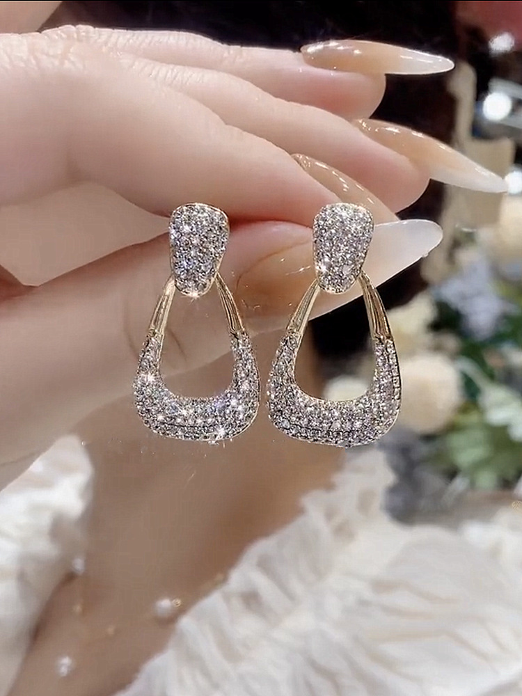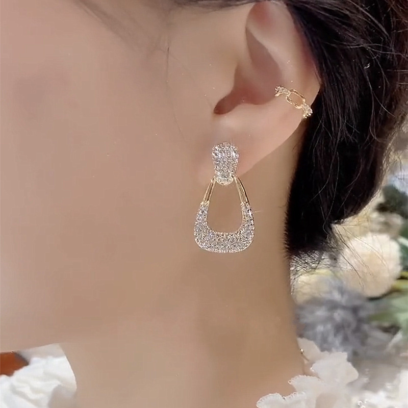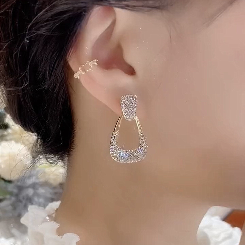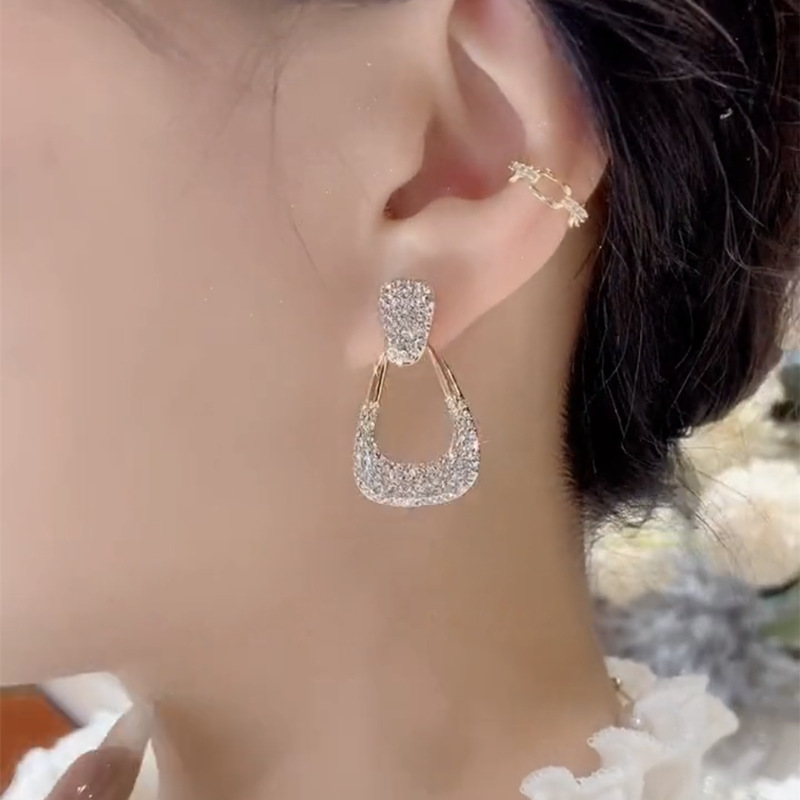 full diamond geometric ear studs