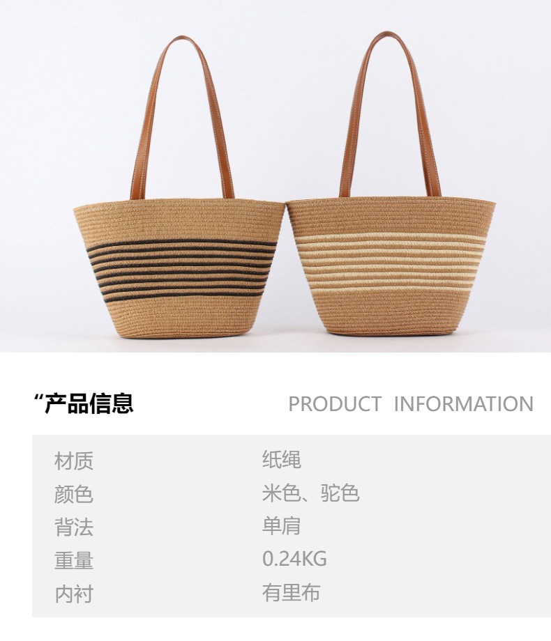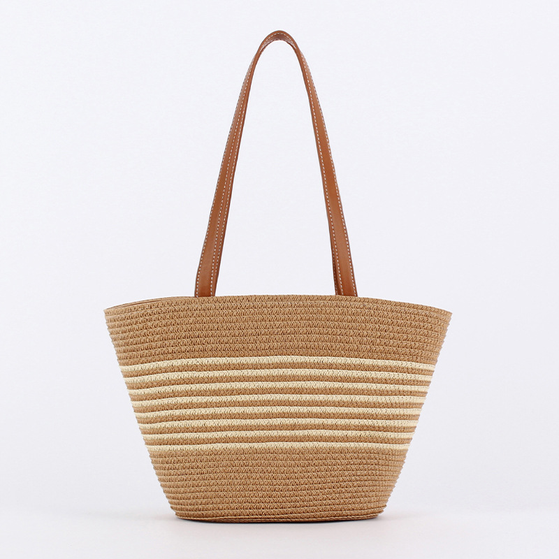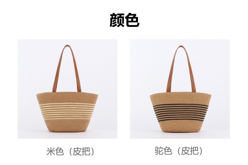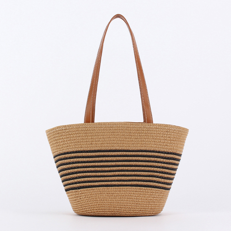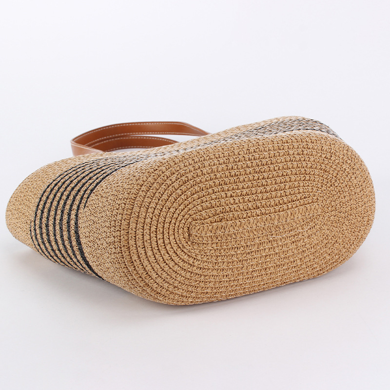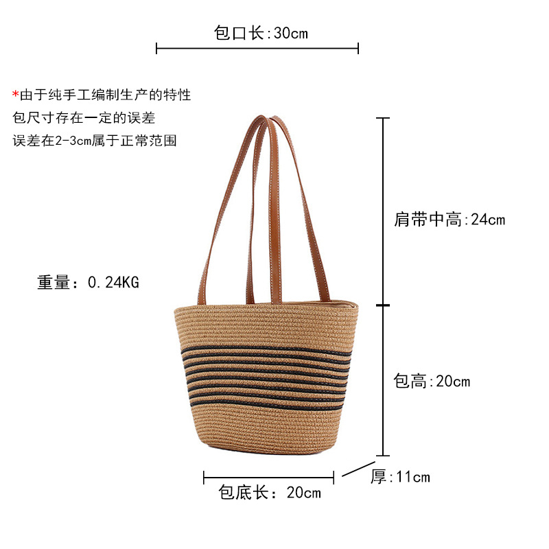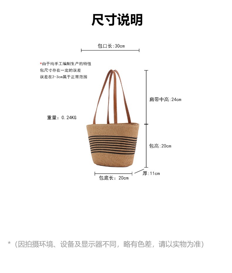 contrast color striped imitation bamboo handle woven bag daily leisure simple personality vacation travel beach bag women's bag