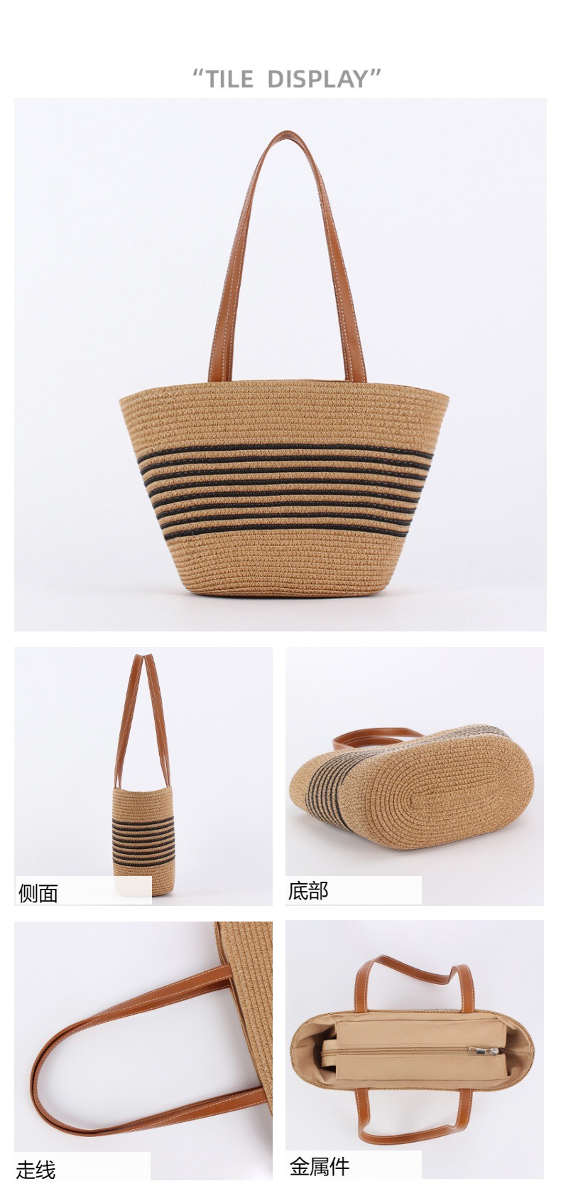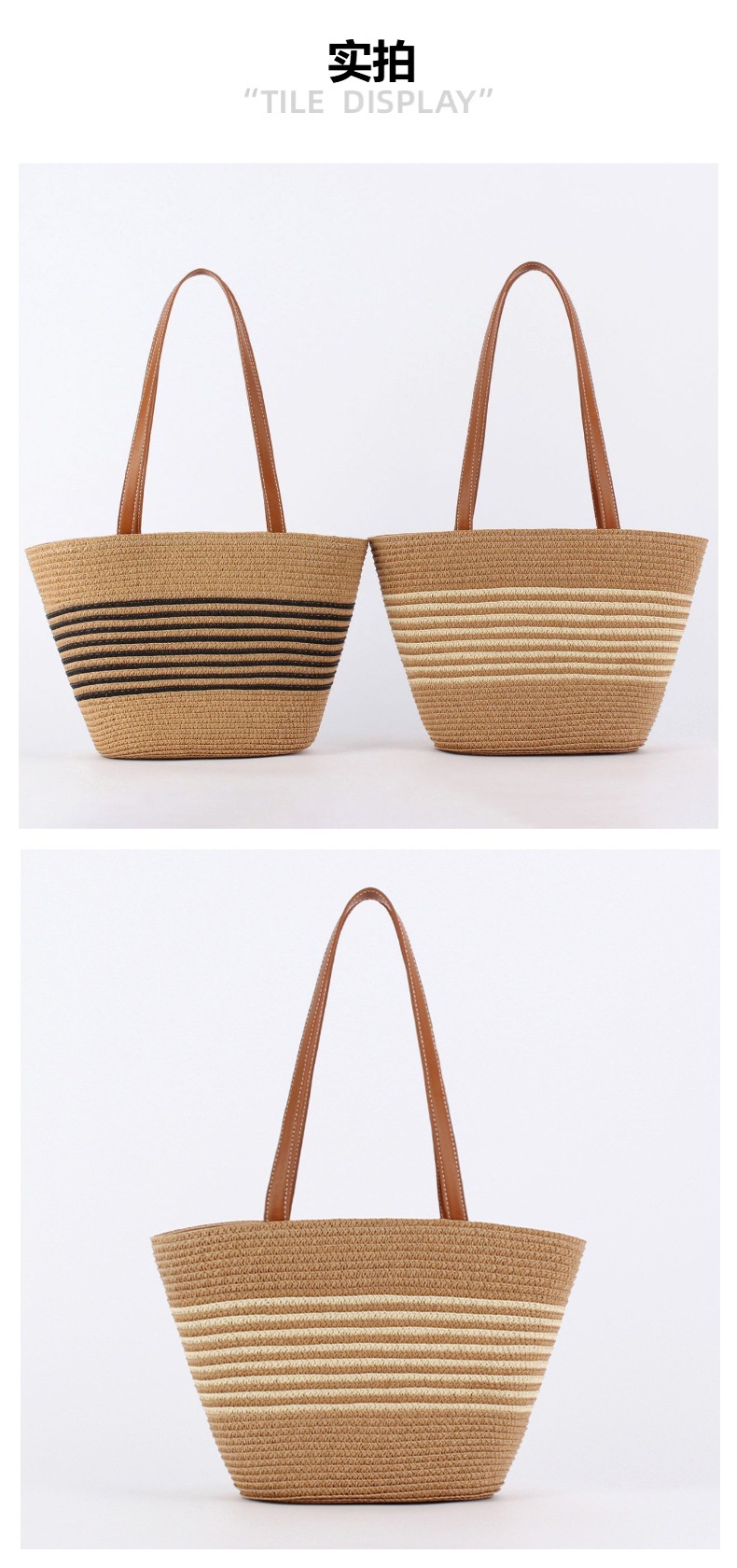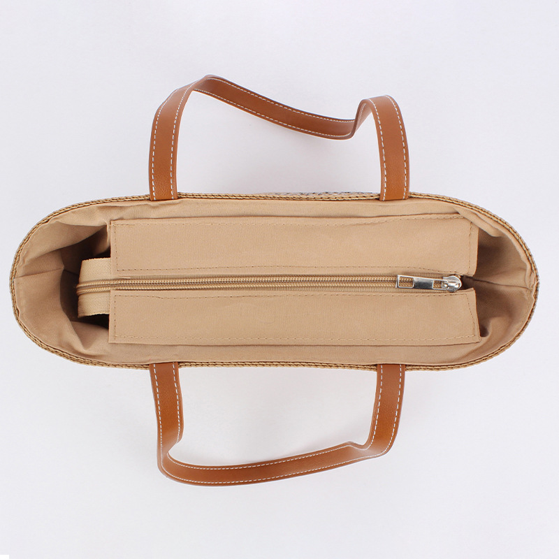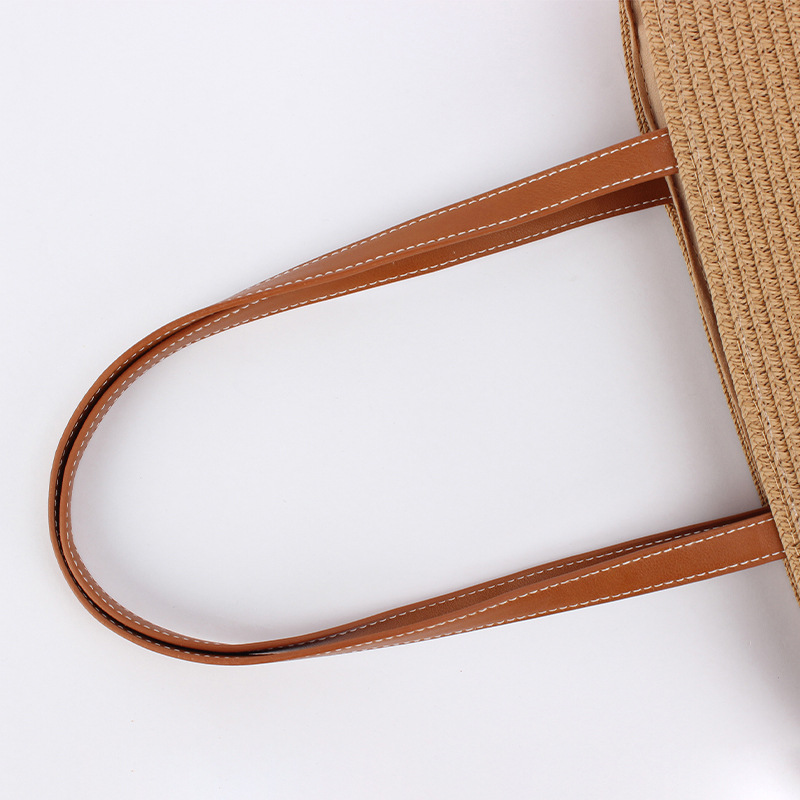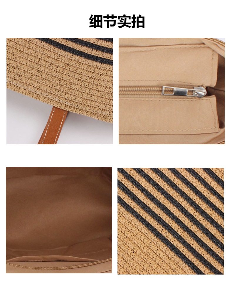 contrast color striped imitation bamboo handle woven bag daily leisure simple personality vacation travel beach bag women's bag