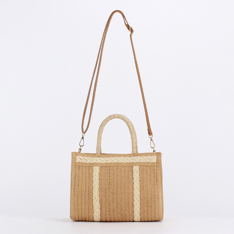 simple solid color pattern woven bag minority fashion document tote bag large capacity business commute crossbody lady bag