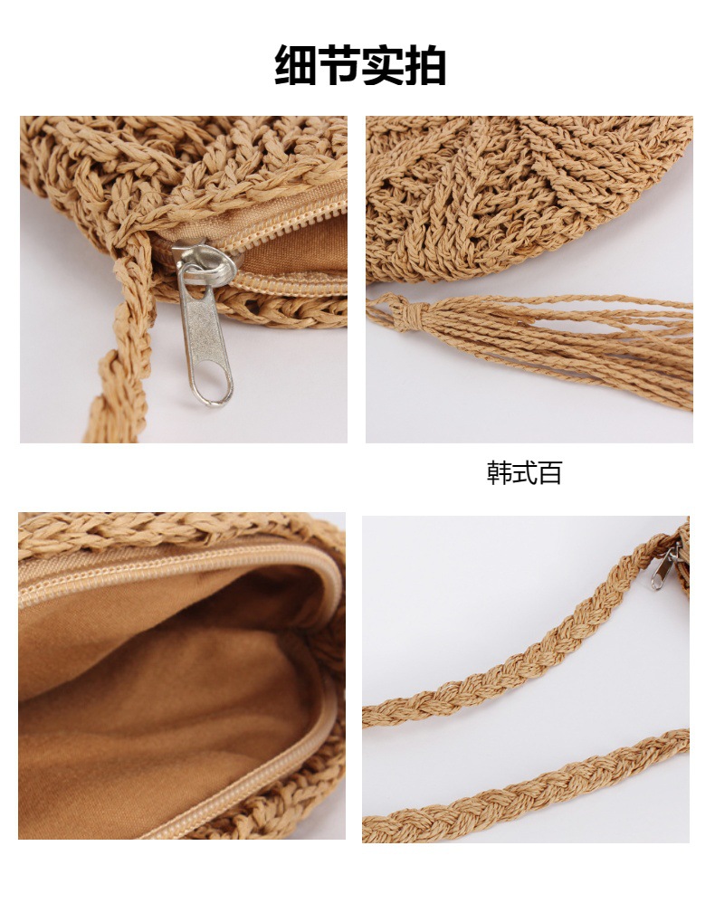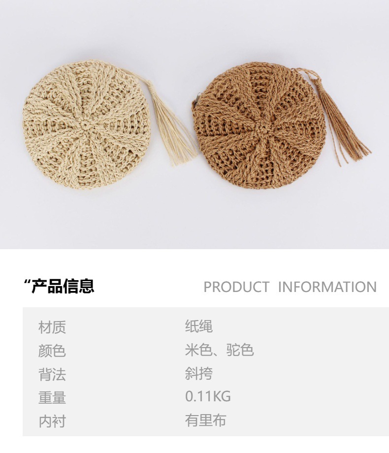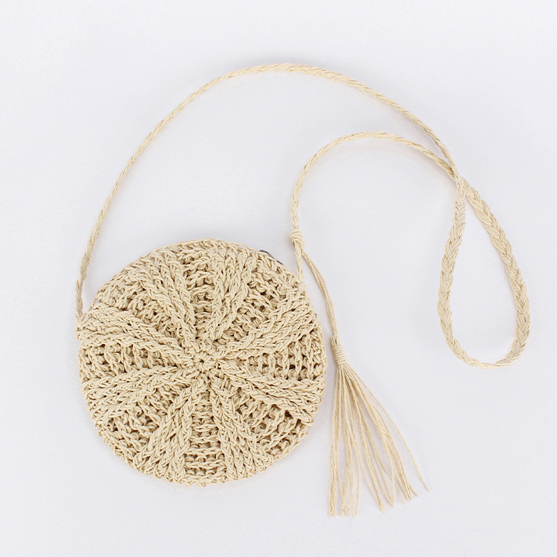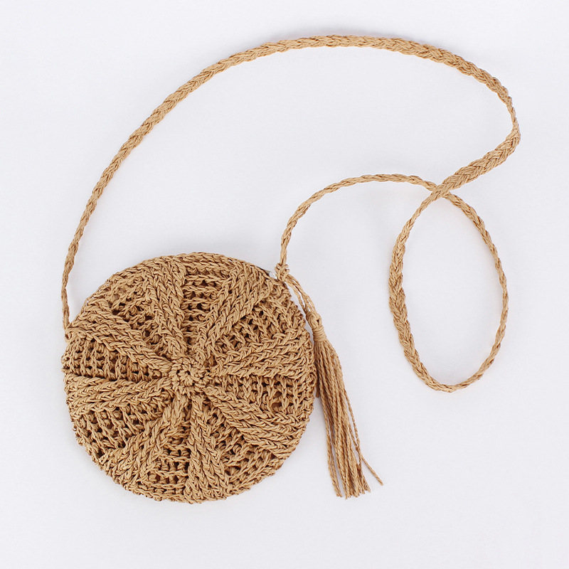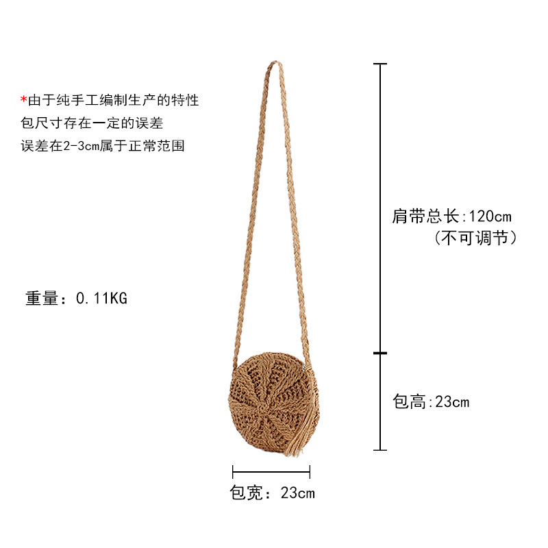 new casual simple round paper rope woven bag paper string tassel crossbody woven bag handmade shoulder summer beach bag