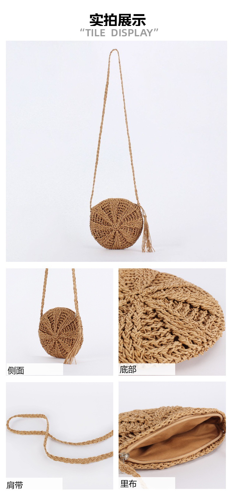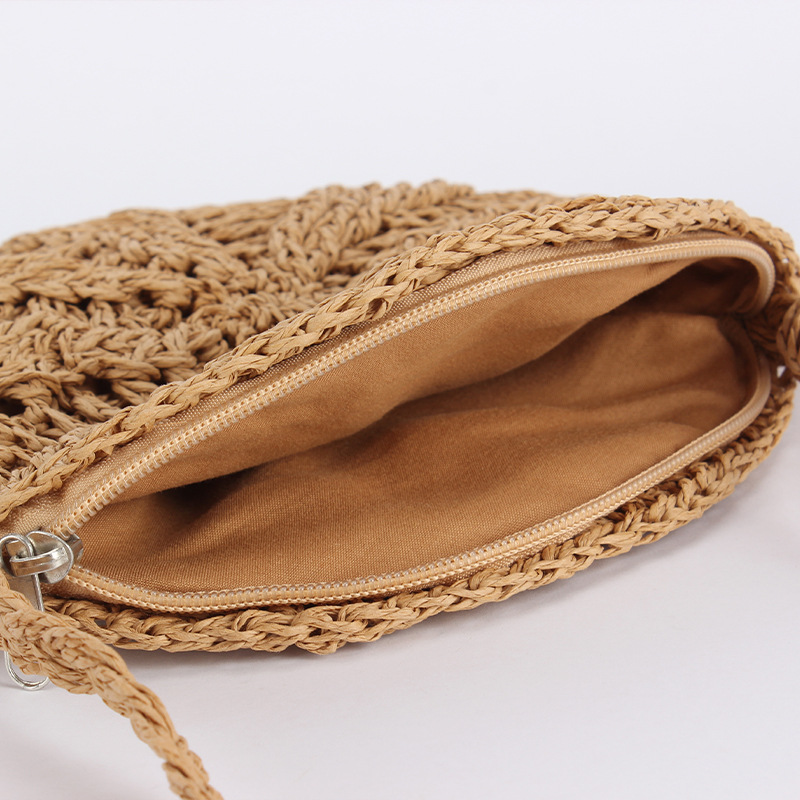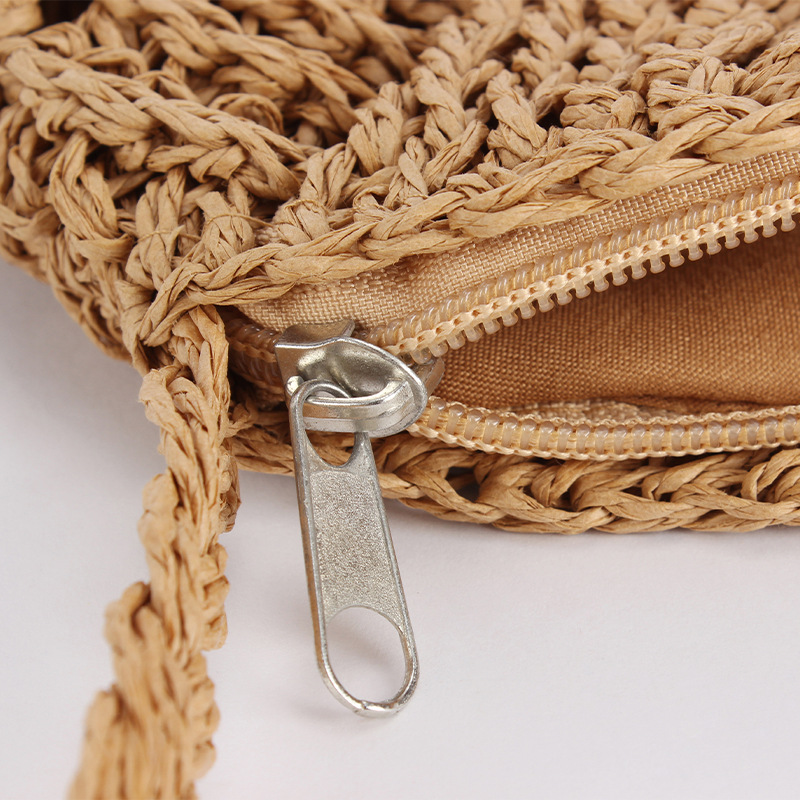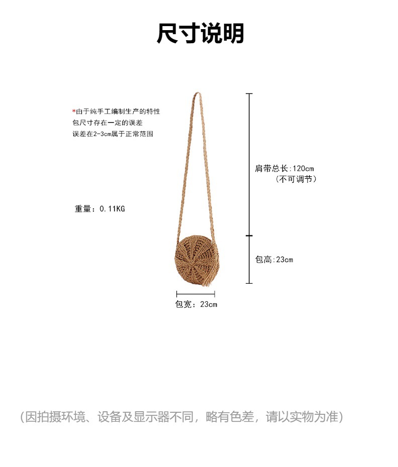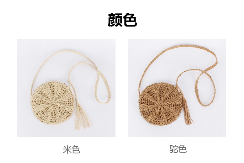 new casual simple round paper rope woven bag paper string tassel crossbody woven bag handmade shoulder summer beach bag