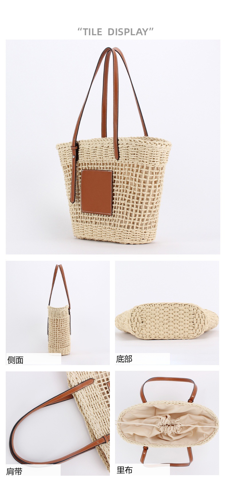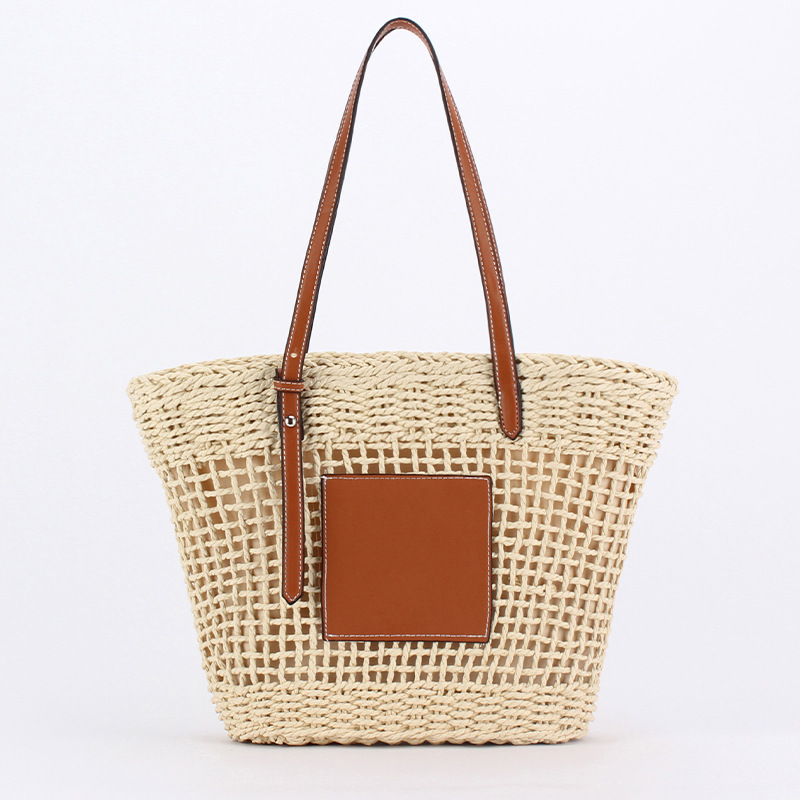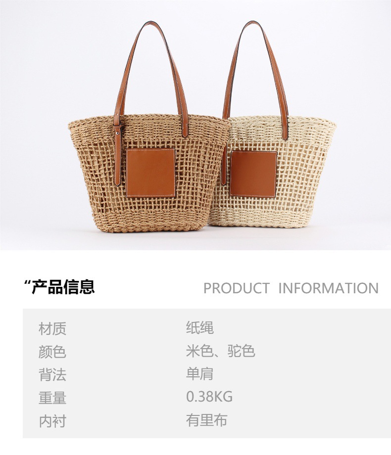 one piece dropshipping large capacity paper rope woven bag women's new woven commuter beach vacation style shoulder underarm tote bag