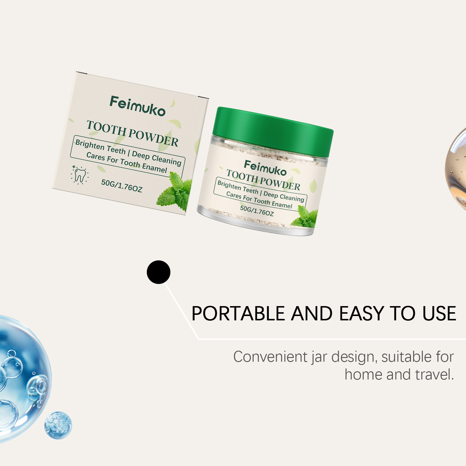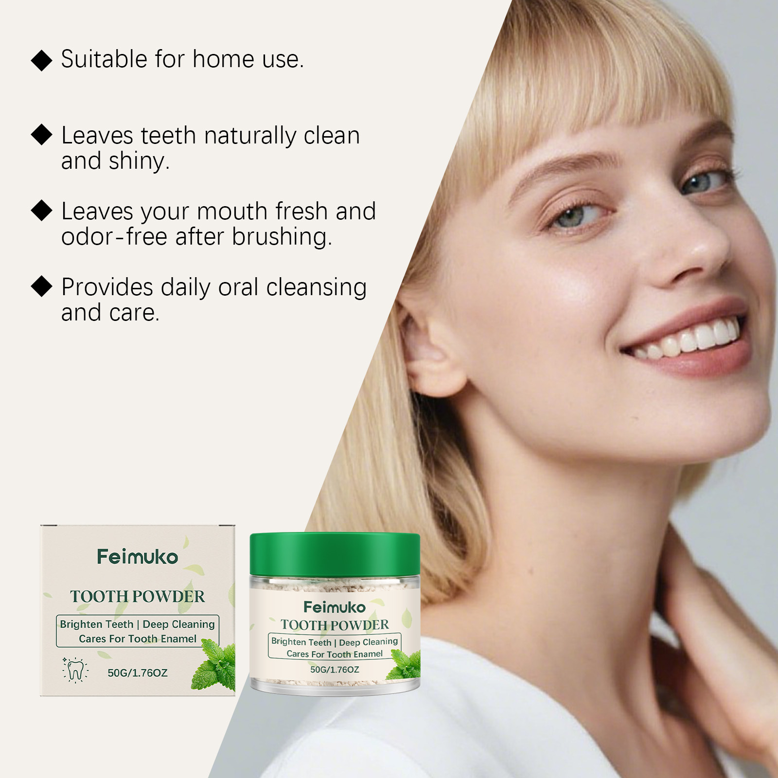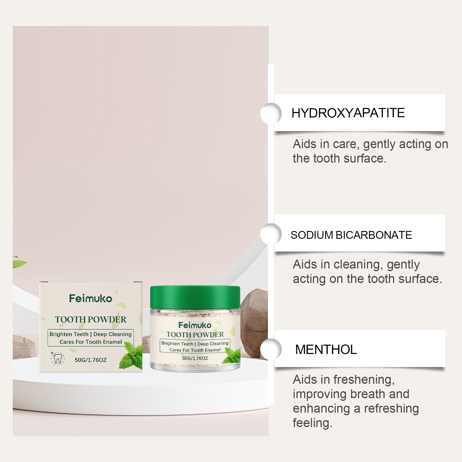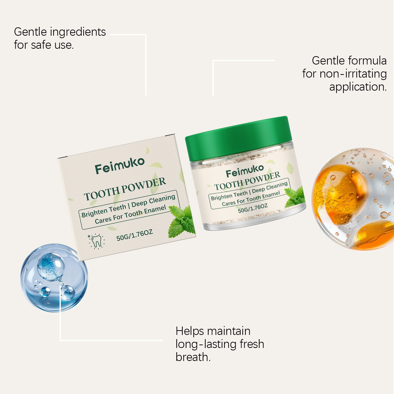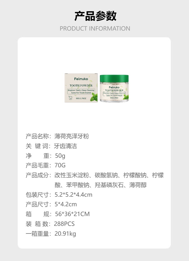 feimuko mint brightening toothpowder gentle daily cleaning fresh breath convenient and comfortable oral care